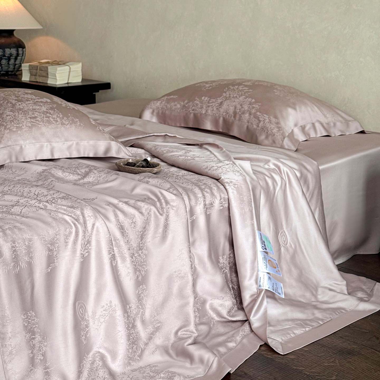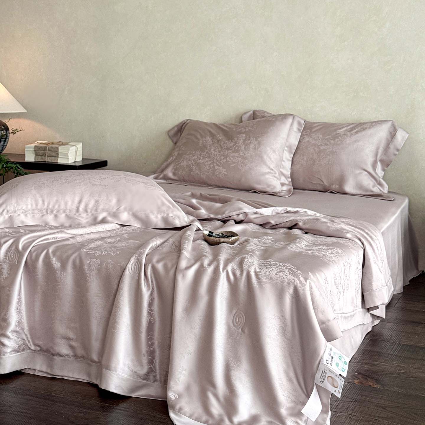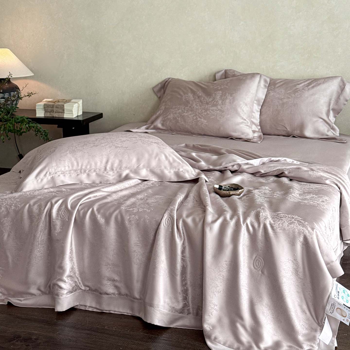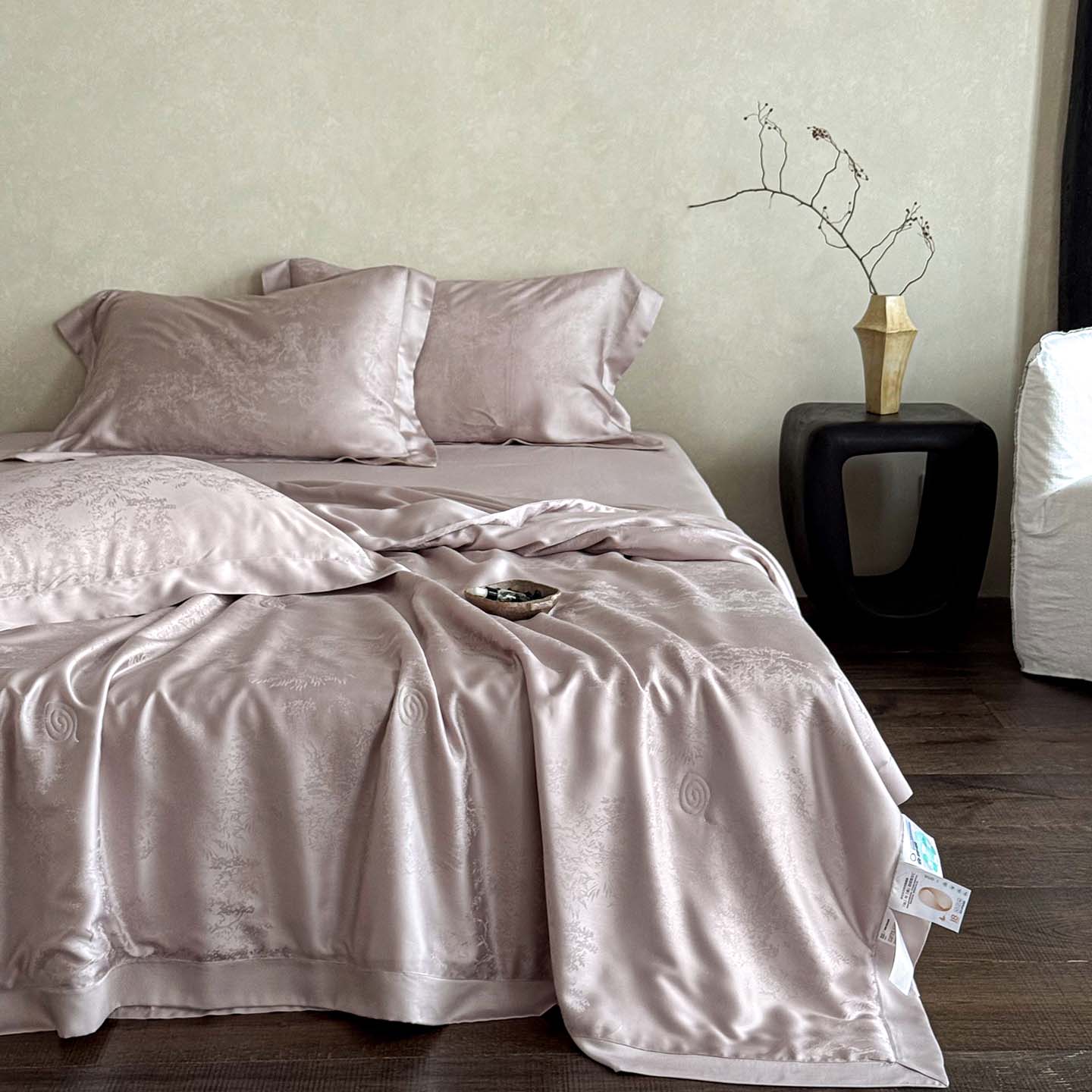 (总)花时间 2026新款提花夏凉被天丝赫本夏被四件套,天丝赫本夏被-浅紫色,天丝赫本夏被-香槟色