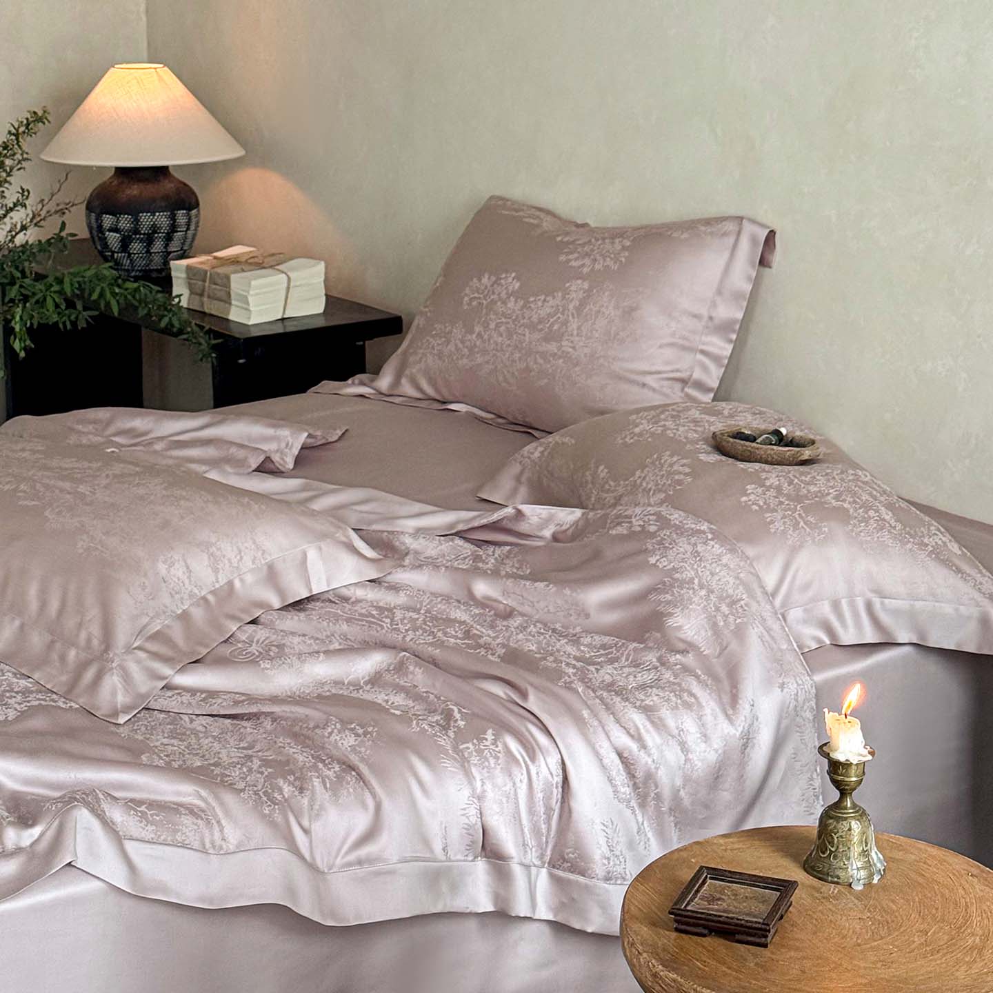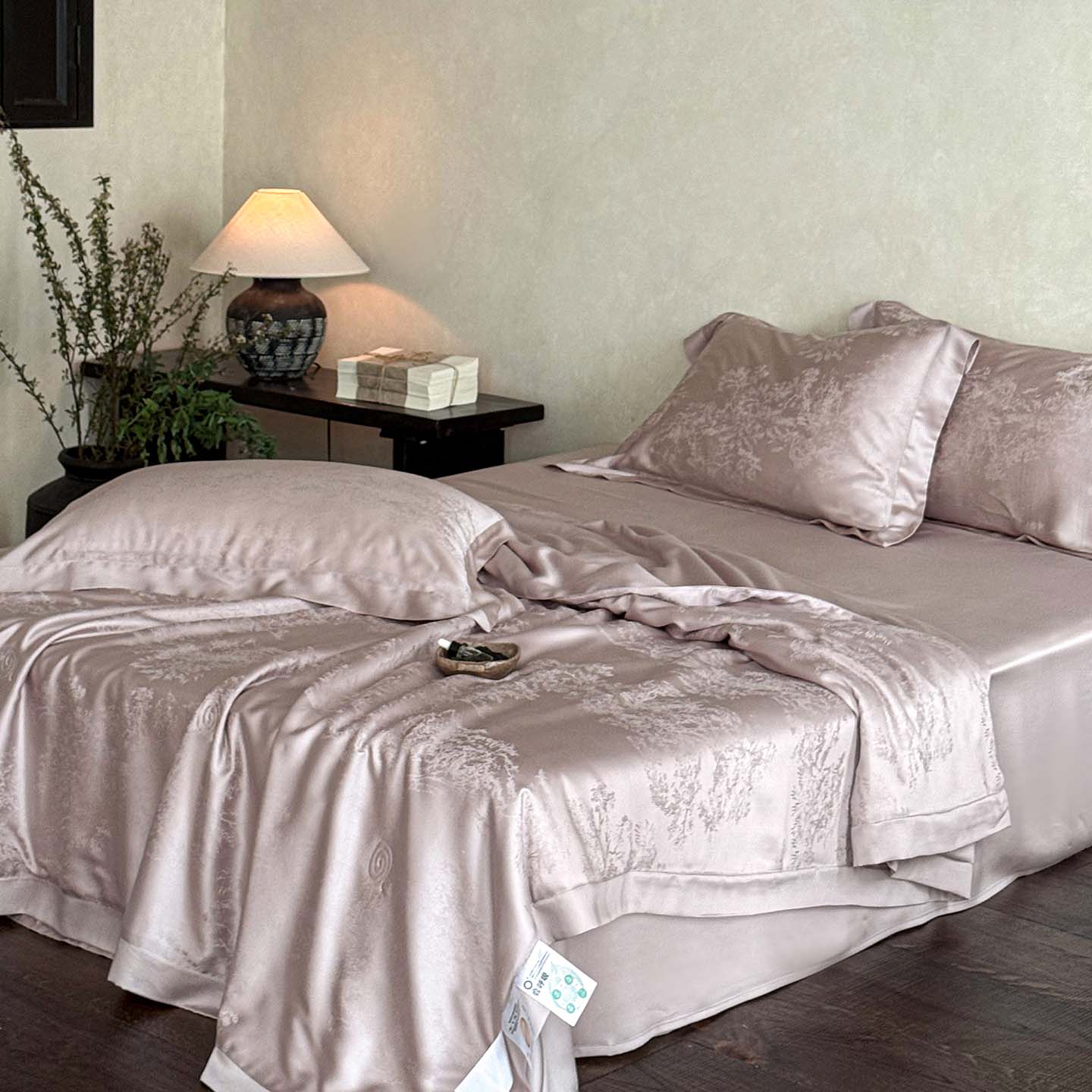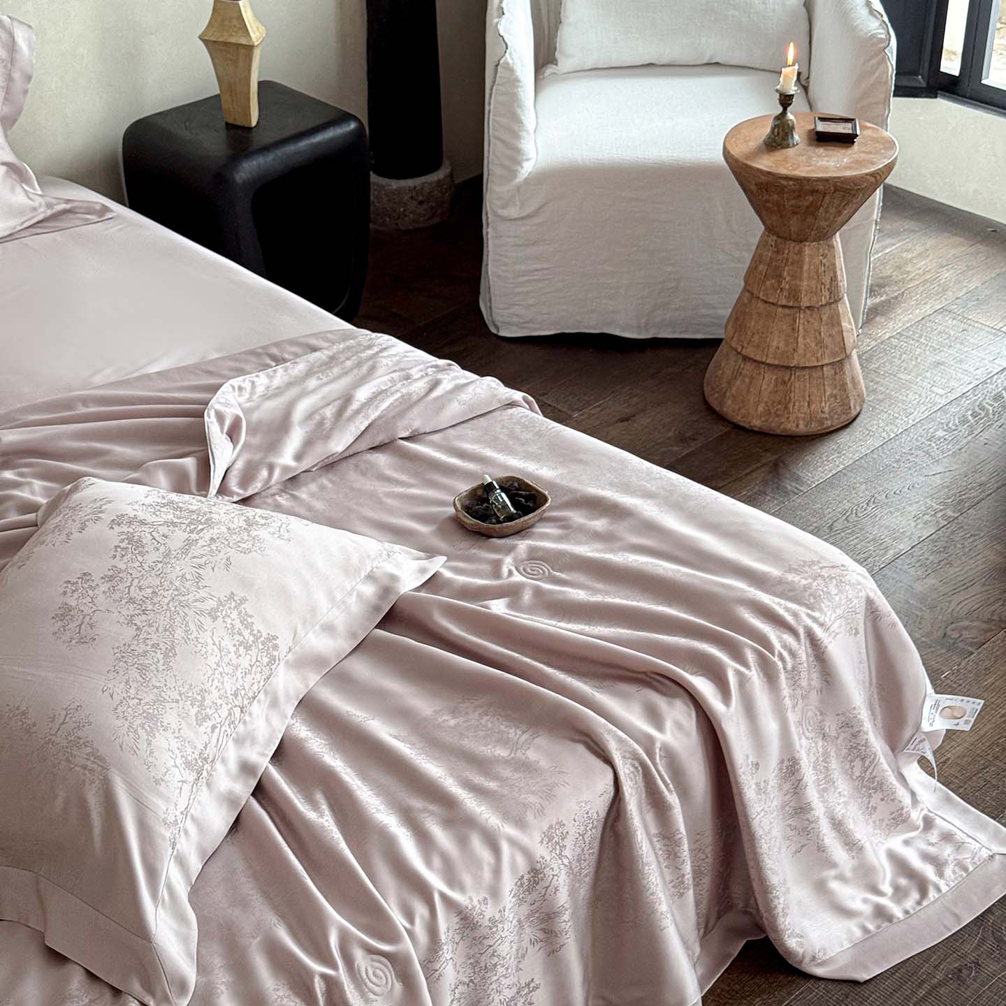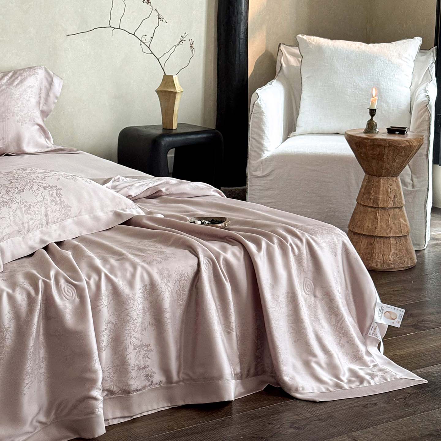 (总)花时间 2026新款提花夏凉被天丝赫本夏被四件套,天丝赫本夏被-浅紫色,天丝赫本夏被-香槟色