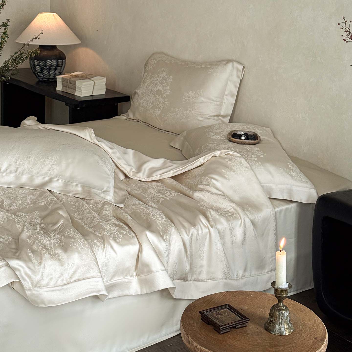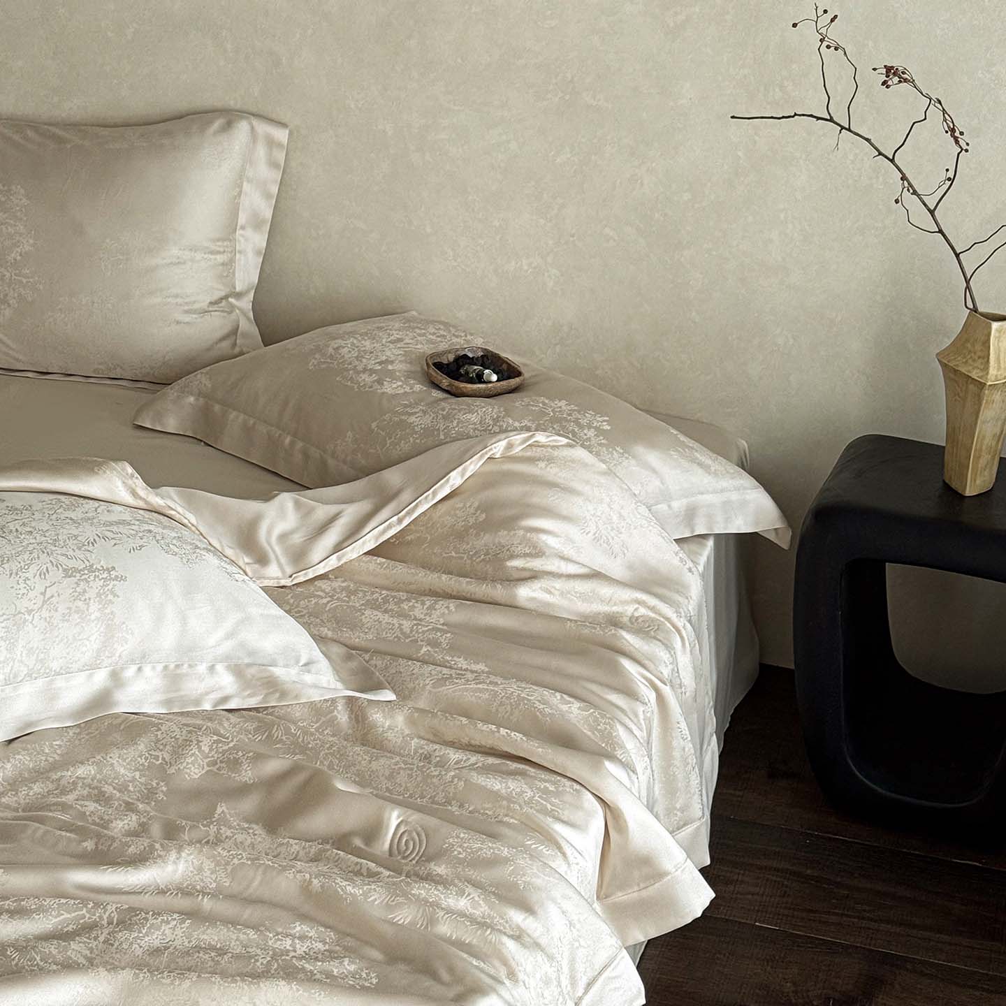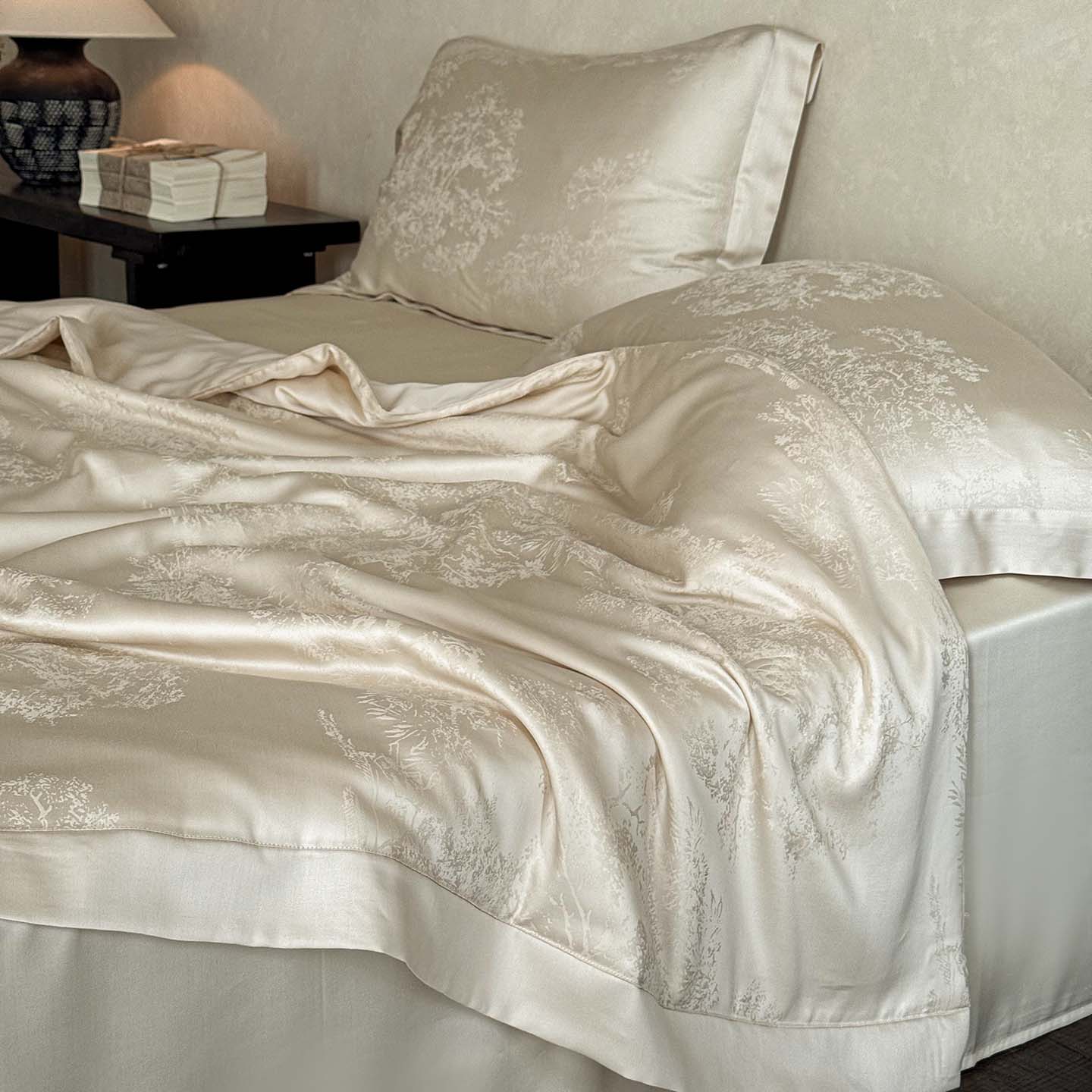 当前位置: 91家纺网 > 商品网购 > 被子 > 夏被 > 花时间 2026新款提花夏凉被天丝赫本夏被四件套 天丝赫本夏被-香槟色