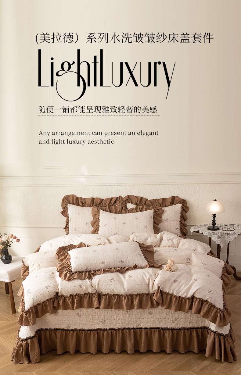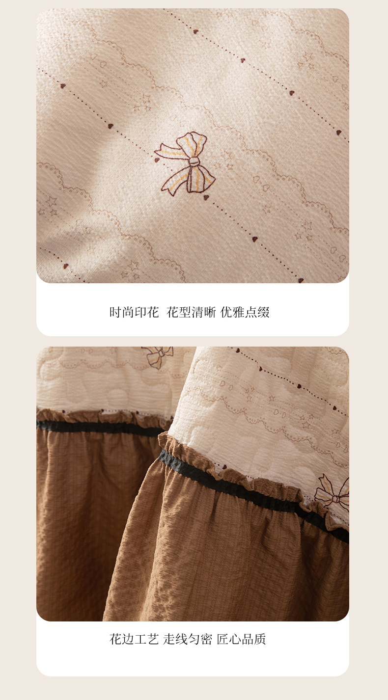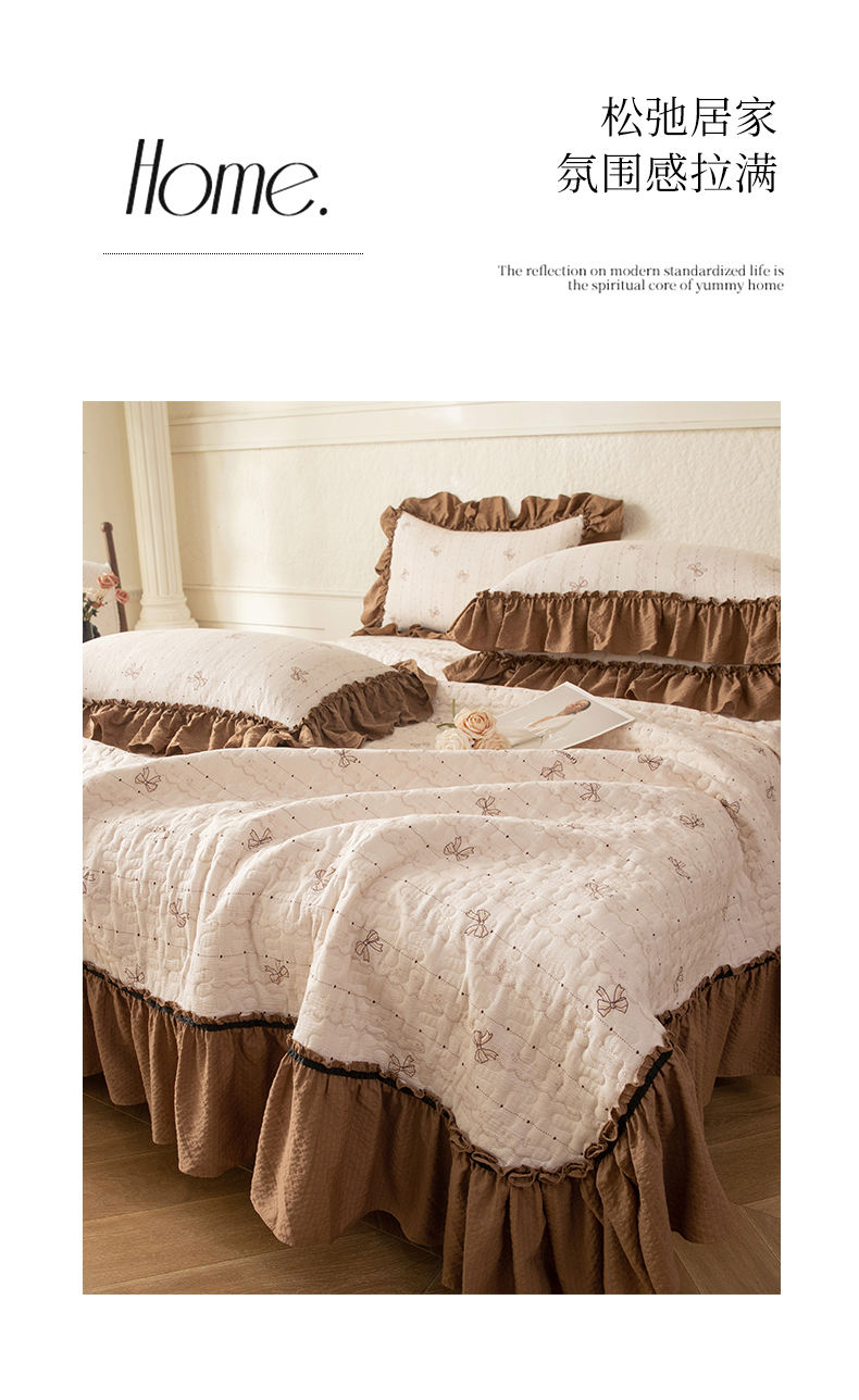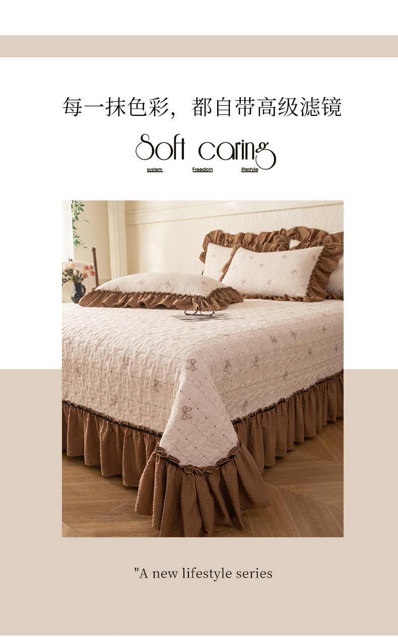 (总)贝凯瑞 2026新款双层纱木棉水洗棉法式复古花边床盖单件三件四件套-焦糖系列,焦糖蝴蝶结,焦糖花漾,焦糖蓝蝶,焦糖熊,焦糖樱桃,摩卡秘境