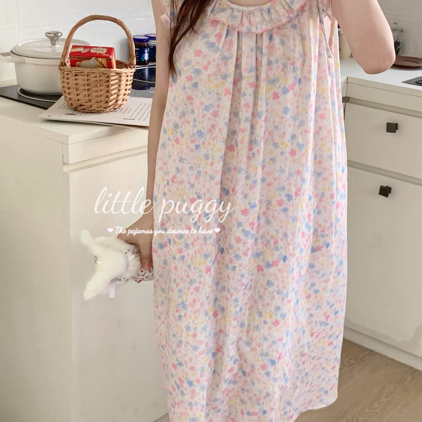 当前位置: 91家纺网 > 商品网购 > 居家日用 > 睡衣/家居服套装 > 妍景家居生活馆 2026新款木耳边无袖睡裙 莫奈花园