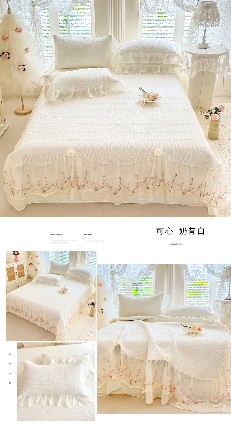 苏米娜2026春夏新品韩版公主风超柔水洗棉床盖四件套刺绣针织棉双层纱纯棉棉麻全棉公主风床盖款四件套,芬迪-香雪粉, 芬迪-可可灰 ,芬迪-松露咖 ,芬迪-星云紫