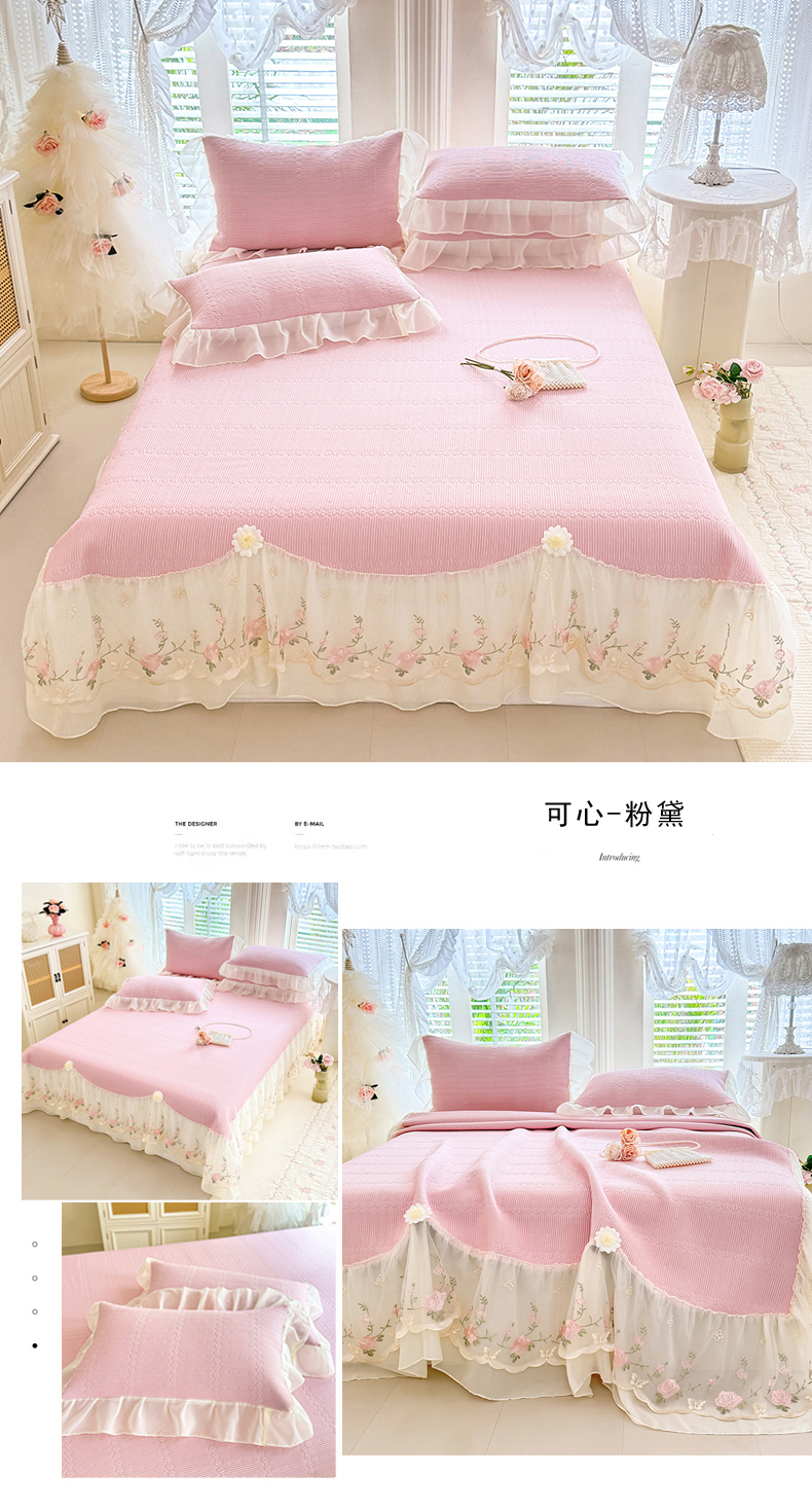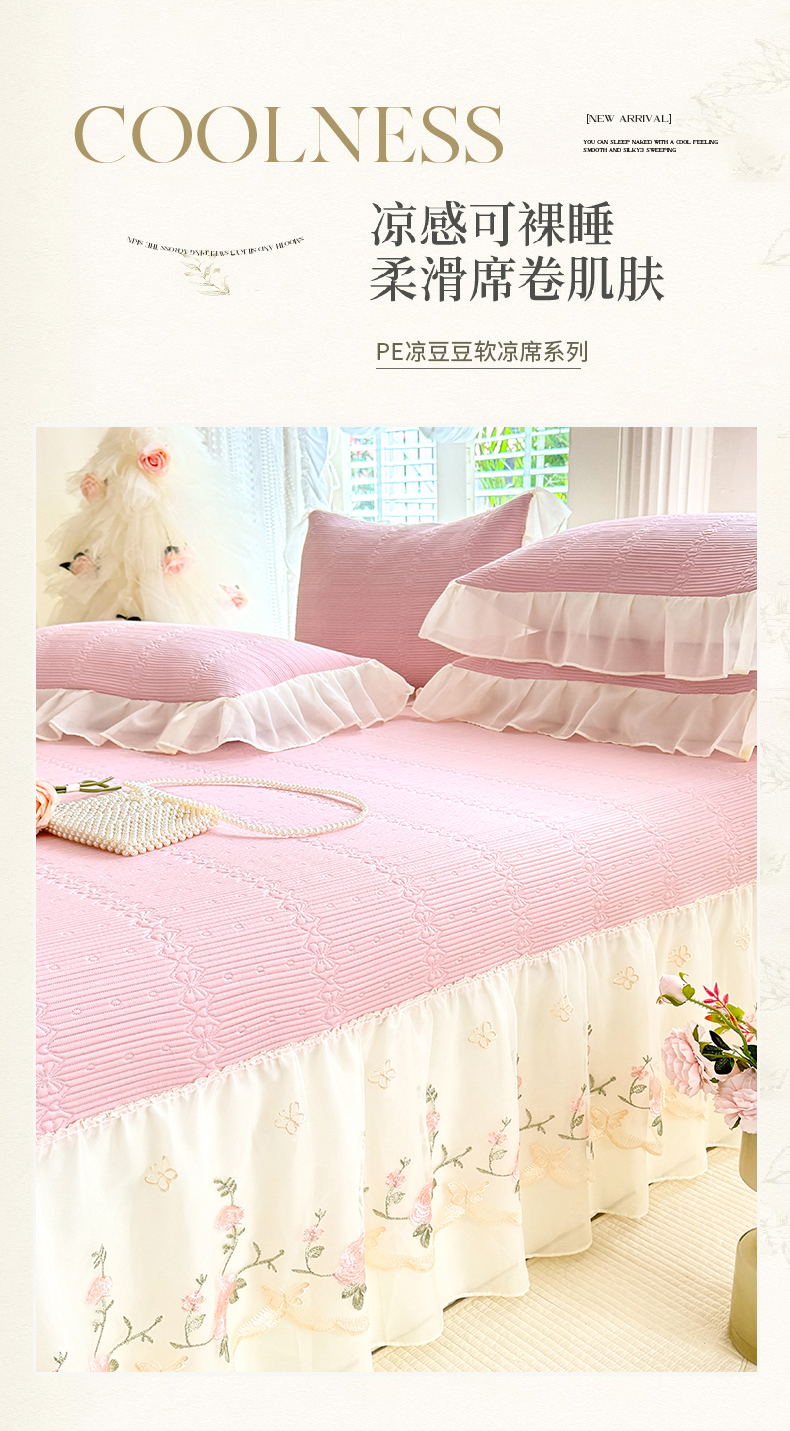 商品名称:苏米娜家纺SUMINA 2026新款PE高分子弯边工艺床裙款凉席三件套-可心 可心-粉黛