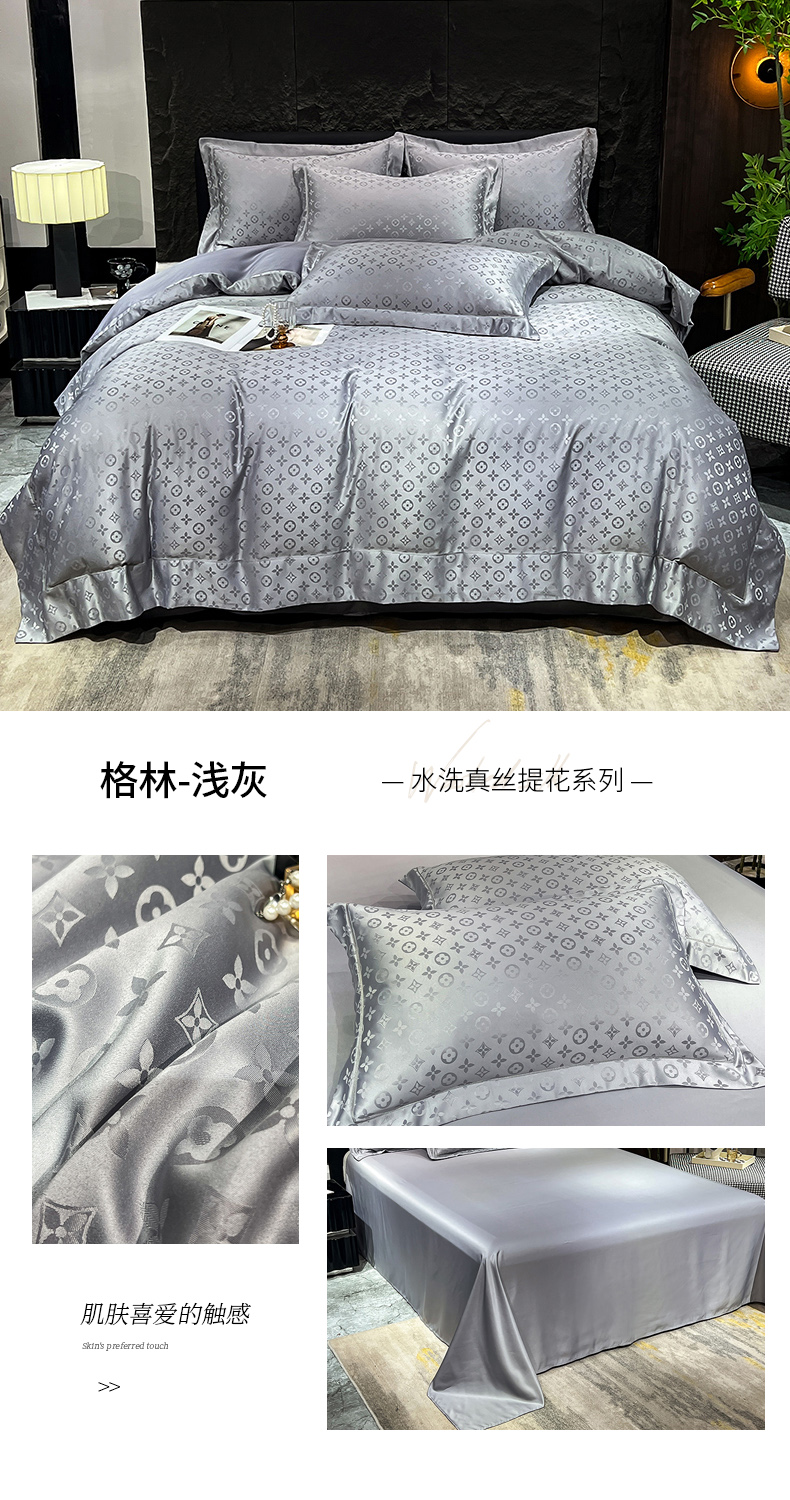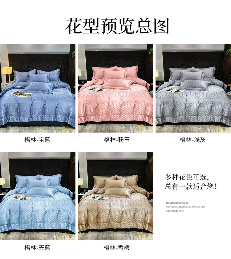 (总) 新25 经年2025年 水洗真丝冰丝天丝提花四件套直播爆款 格林系列 ,格林-宝蓝,格林-粉玉,格林-浅灰,格林-天蓝,格林-香槟