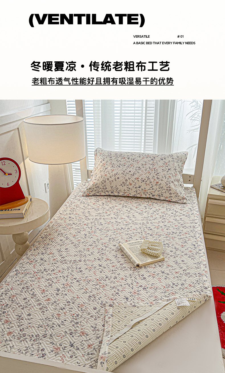 • 91家纺网 家纺一手货源 找家纺 忆生活家纺 2026新款学生床全棉老粗布软凉席夹棉床盖 组合图