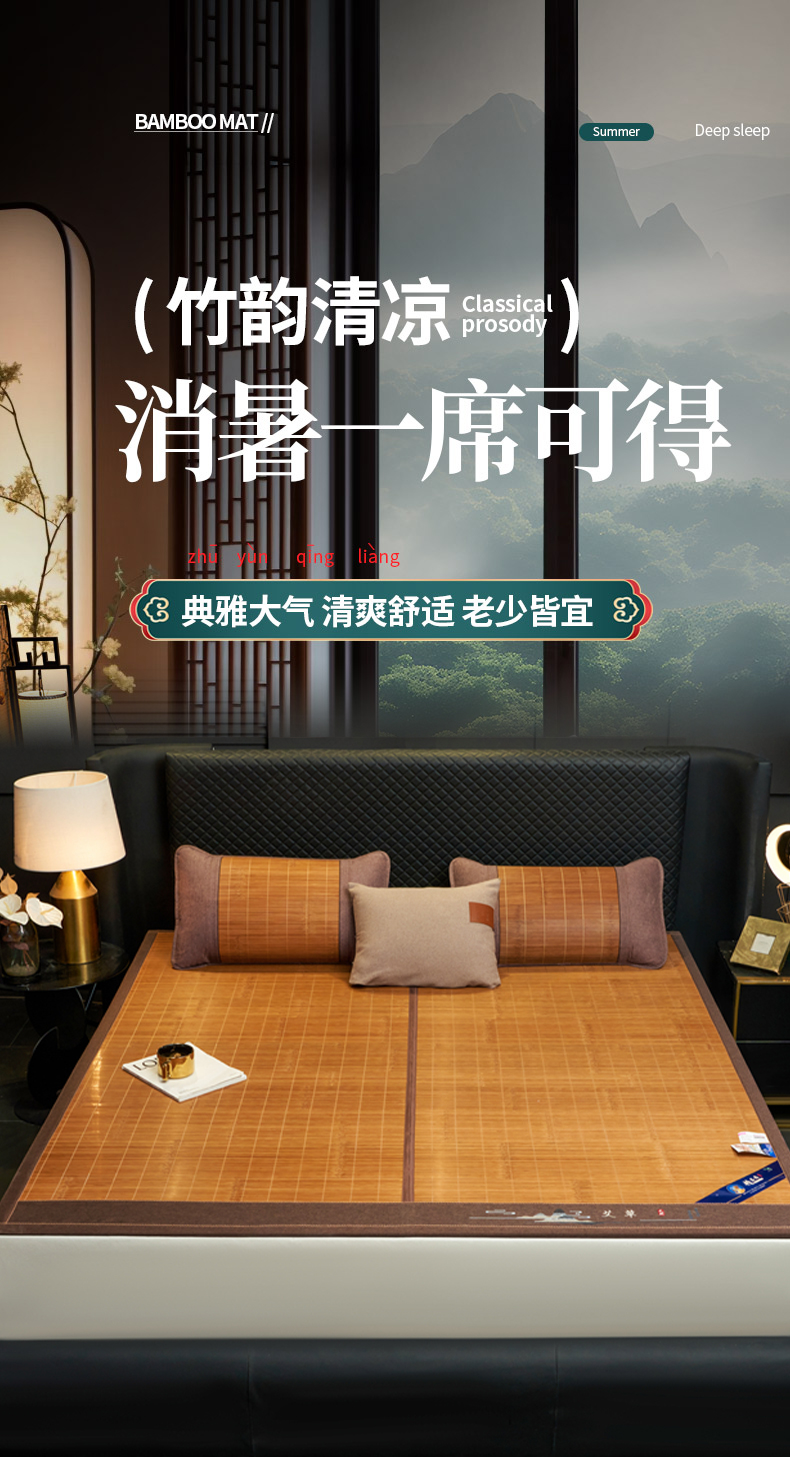 思雅庭 2026新款艾草宽边绣花驱蚊席凉席竹席 清凉艾草