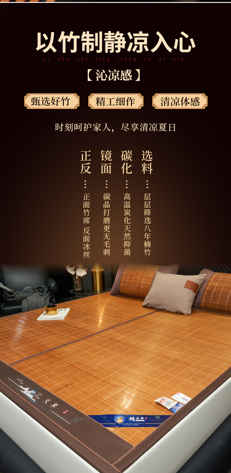 商品名称:思雅庭 2026新款艾草宽边绣花驱蚊席凉席竹席 清凉艾草