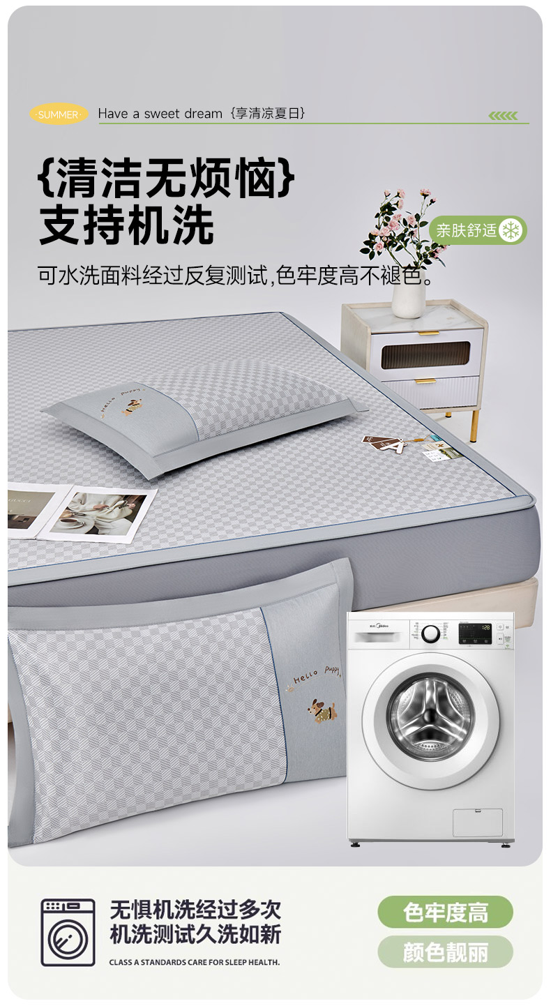 (总)小牛席业 2026新款棋盘格冰丝席(腊肠狗贴布绣)凉席三件套-床席款,腊肠狗贴布绣-灰色,腊肠狗贴布绣-蓝色,腊肠狗贴布绣-粉色,腊肠狗贴布绣-咖色