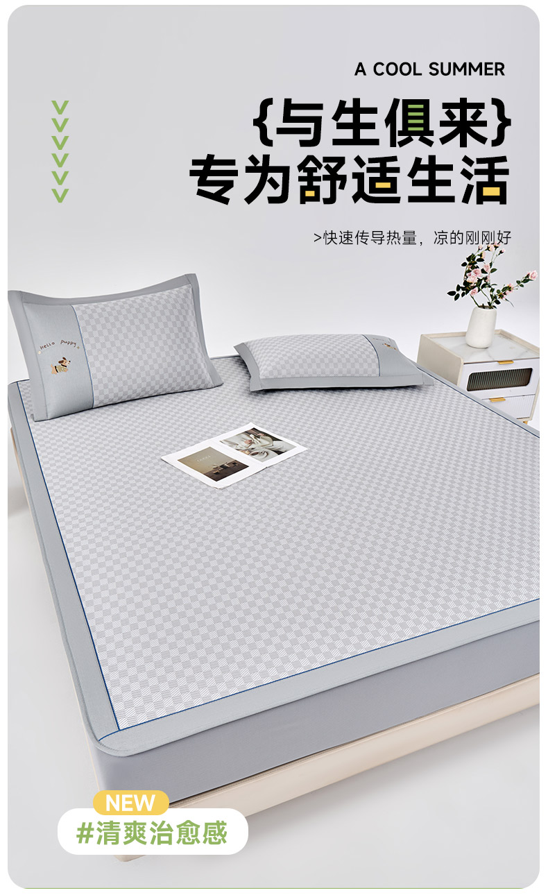 (总)小牛席业 2026春夏新款双PE高凉感-薄荷清凉冰丝席席子凉席-床笠款,灰色,粉色,蓝色,香槟