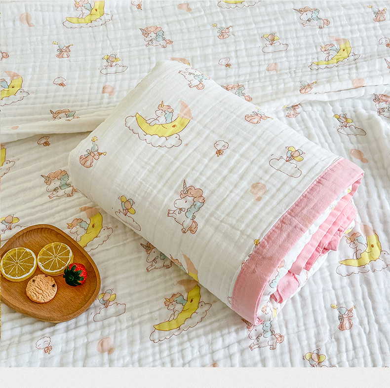 商品名称:慕婷家纺 2026新款婴儿纱布浴巾浴巾全棉六层纱布泡泡纱布毛巾被 晚安独角兽
