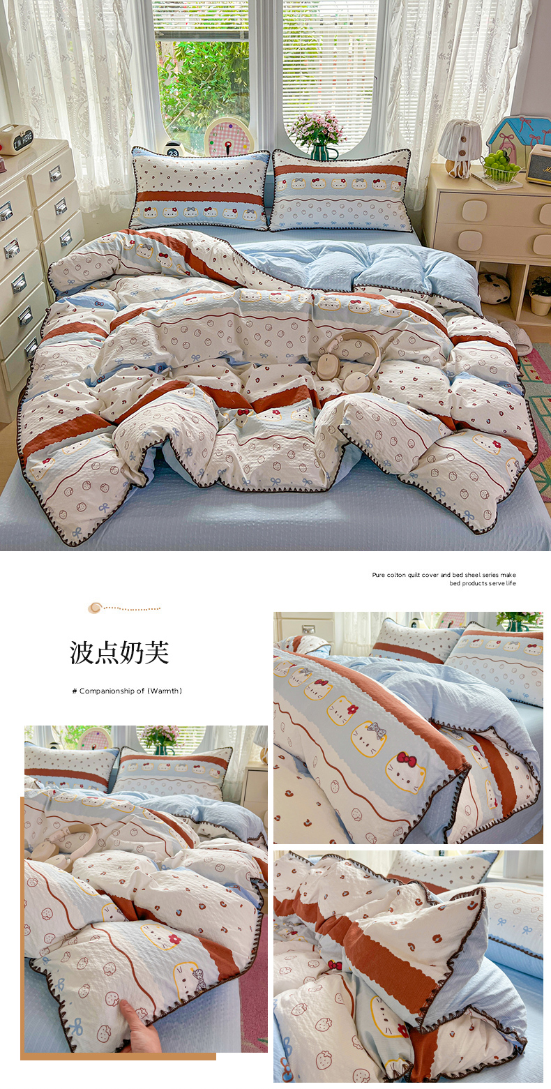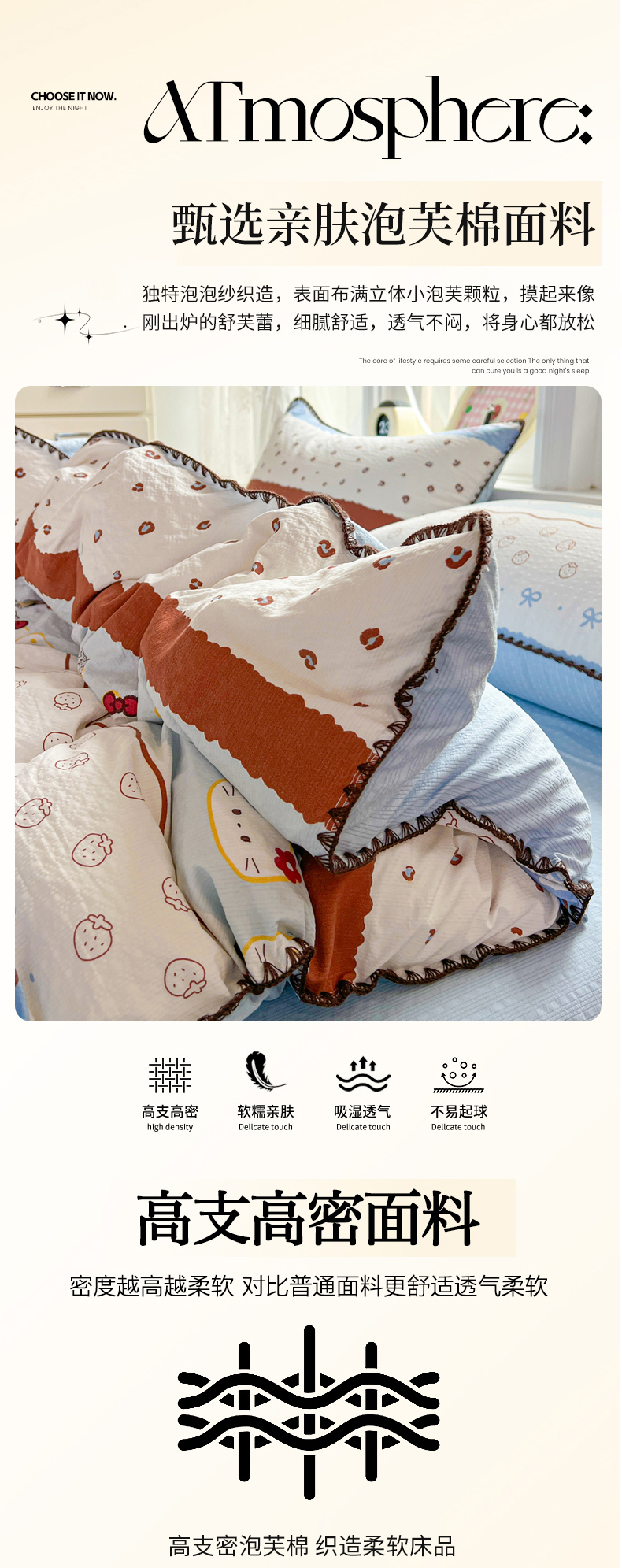 当前位置: 91家纺网 > 商品网购 > 床品套件 > 四件套 > 其它四件套 > 恒尚居 2026新款泡芙纱四件套贝壳绣边床盖套件单被套床单床笠 【波点奶芙】贝壳边