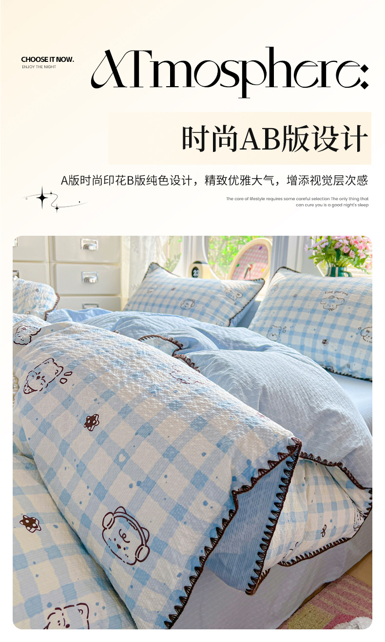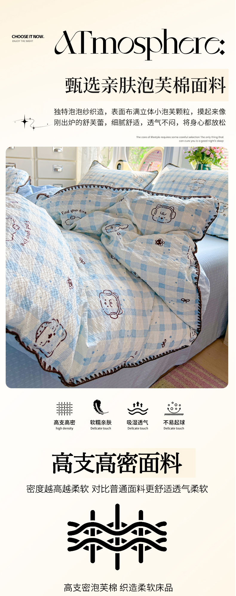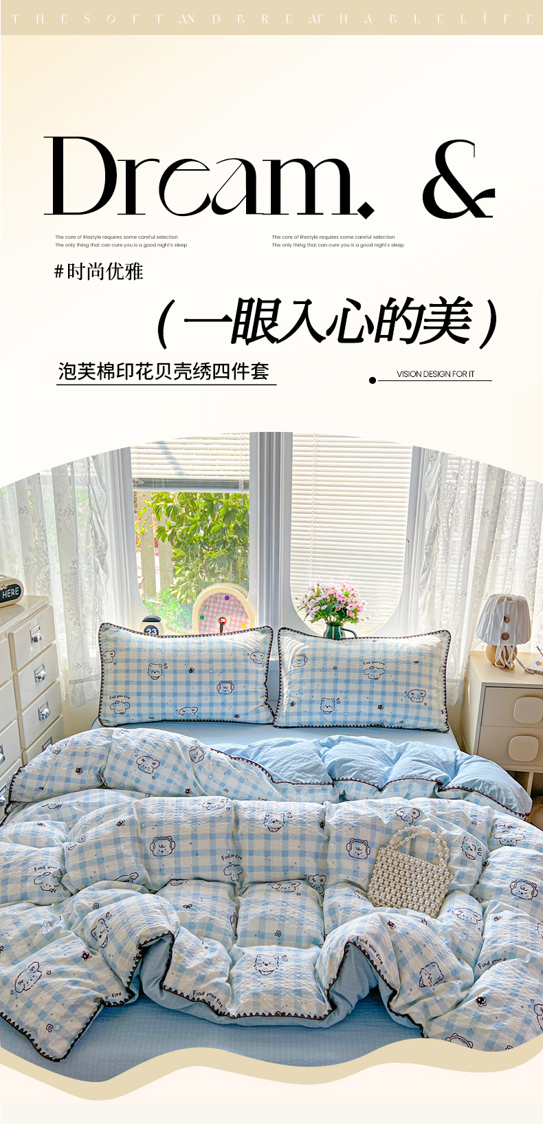 当前位置: 91家纺网 > 商品网购 > 床品套件 > 四件套 > 其它四件套 > 恒尚居 2026新款泡芙纱四件套贝壳绣边床盖套件单被套床单床笠 【兰格奶狗】贝壳边