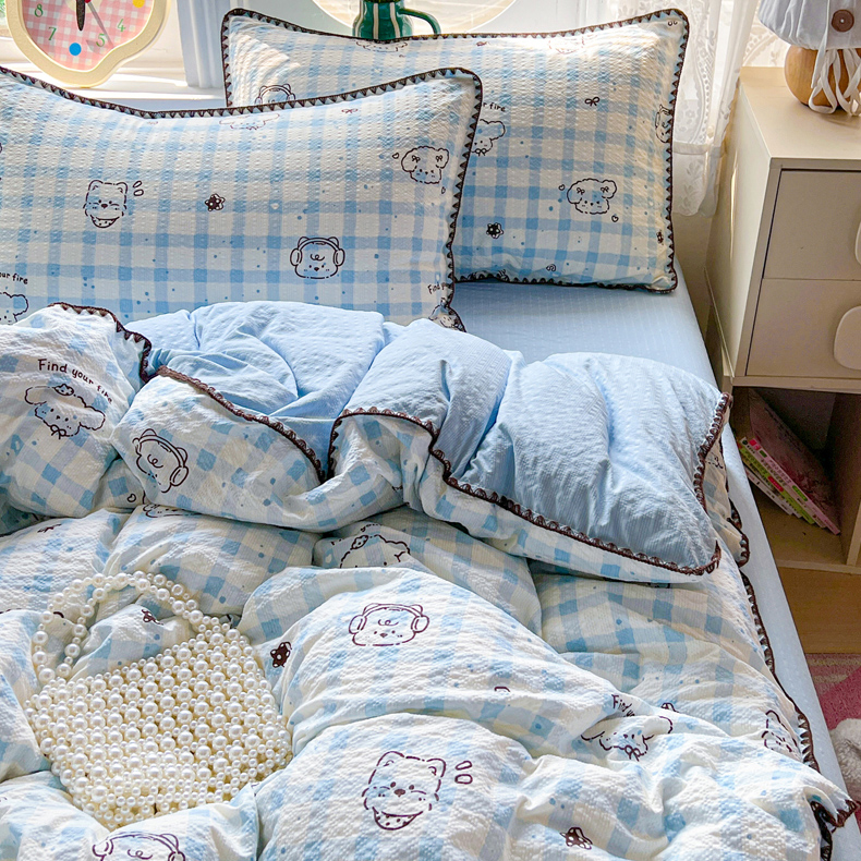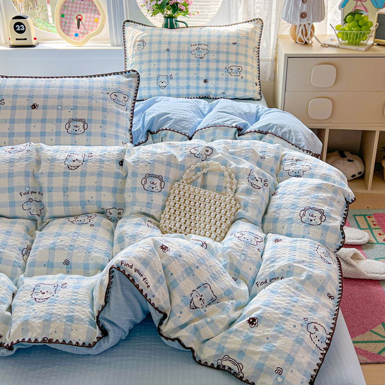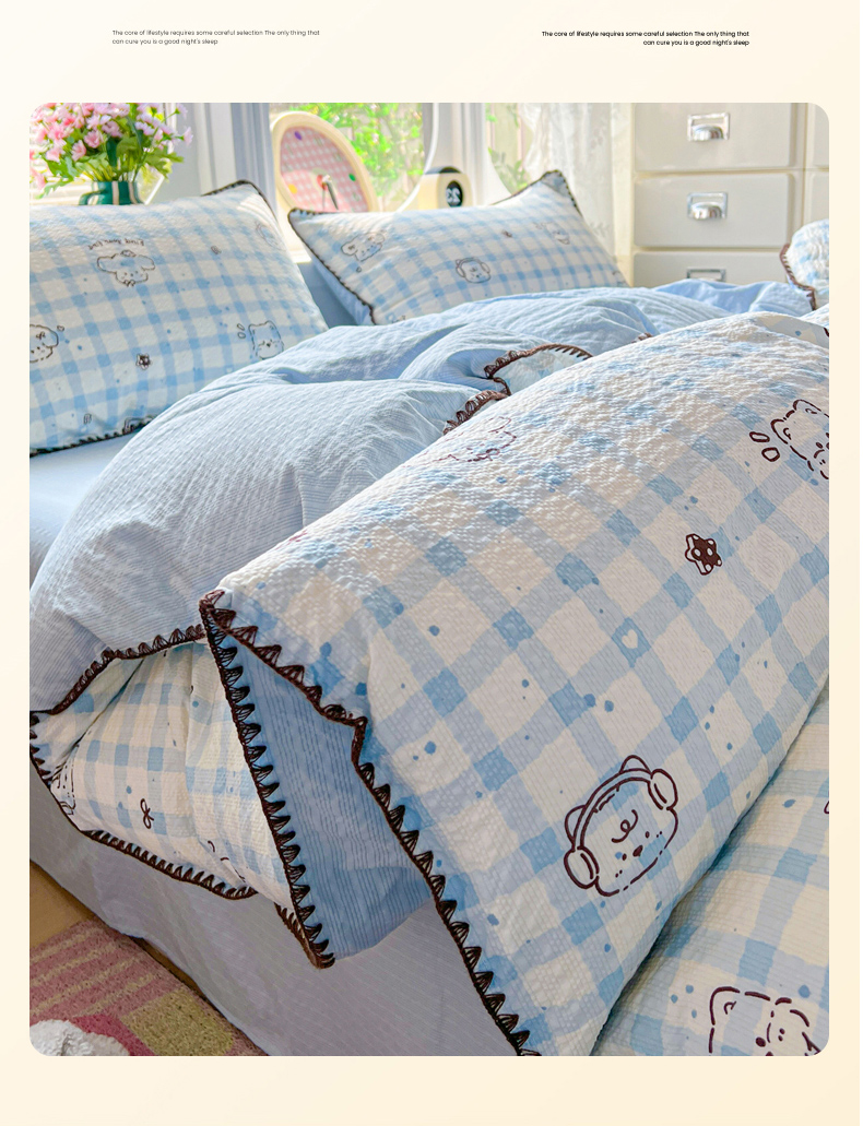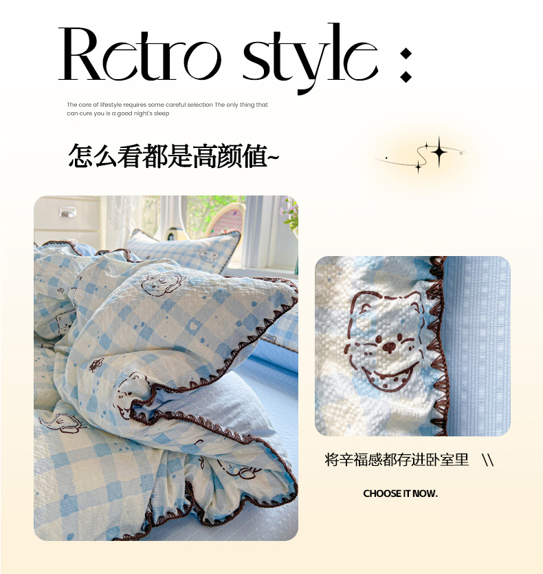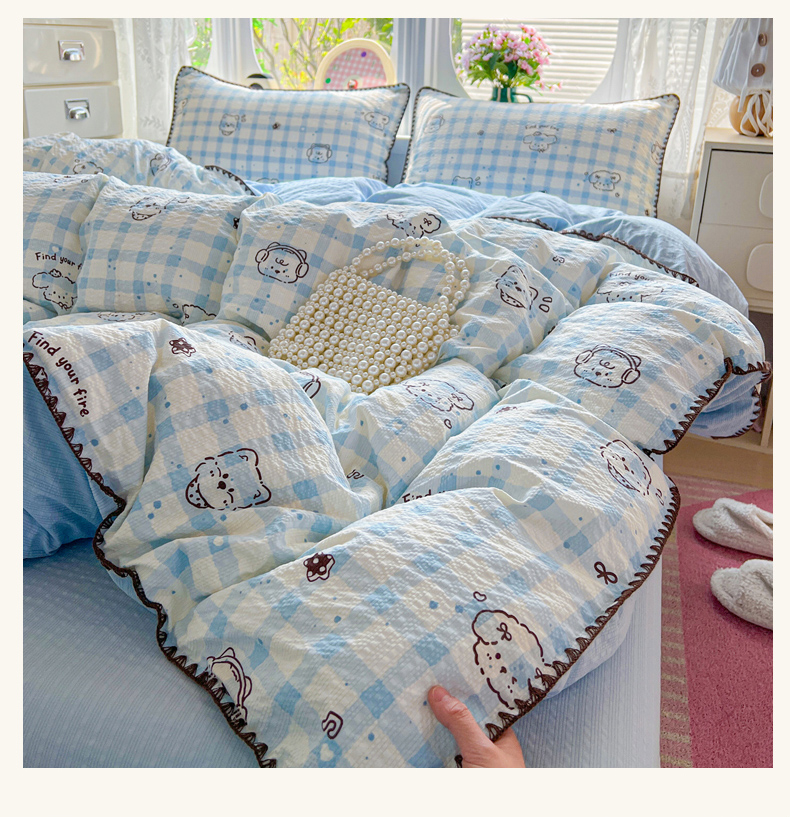 当前位置: 91家纺网 > 商品网购 > 床品套件 > 四件套 > 其它四件套 > 恒尚居 2026新款泡芙纱四件套贝壳绣边床盖套件单被套床单床笠 【兰格奶狗】贝壳边