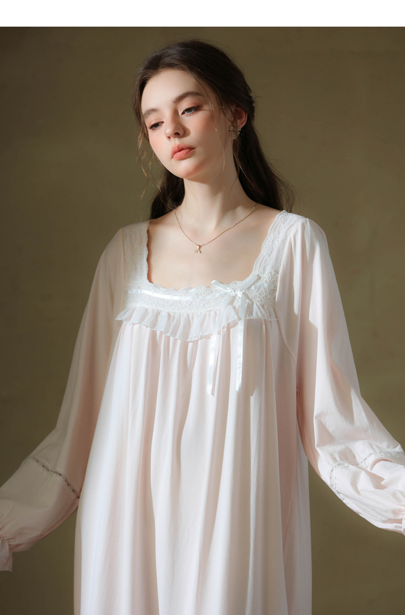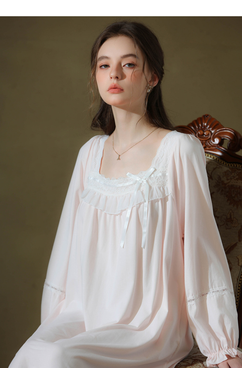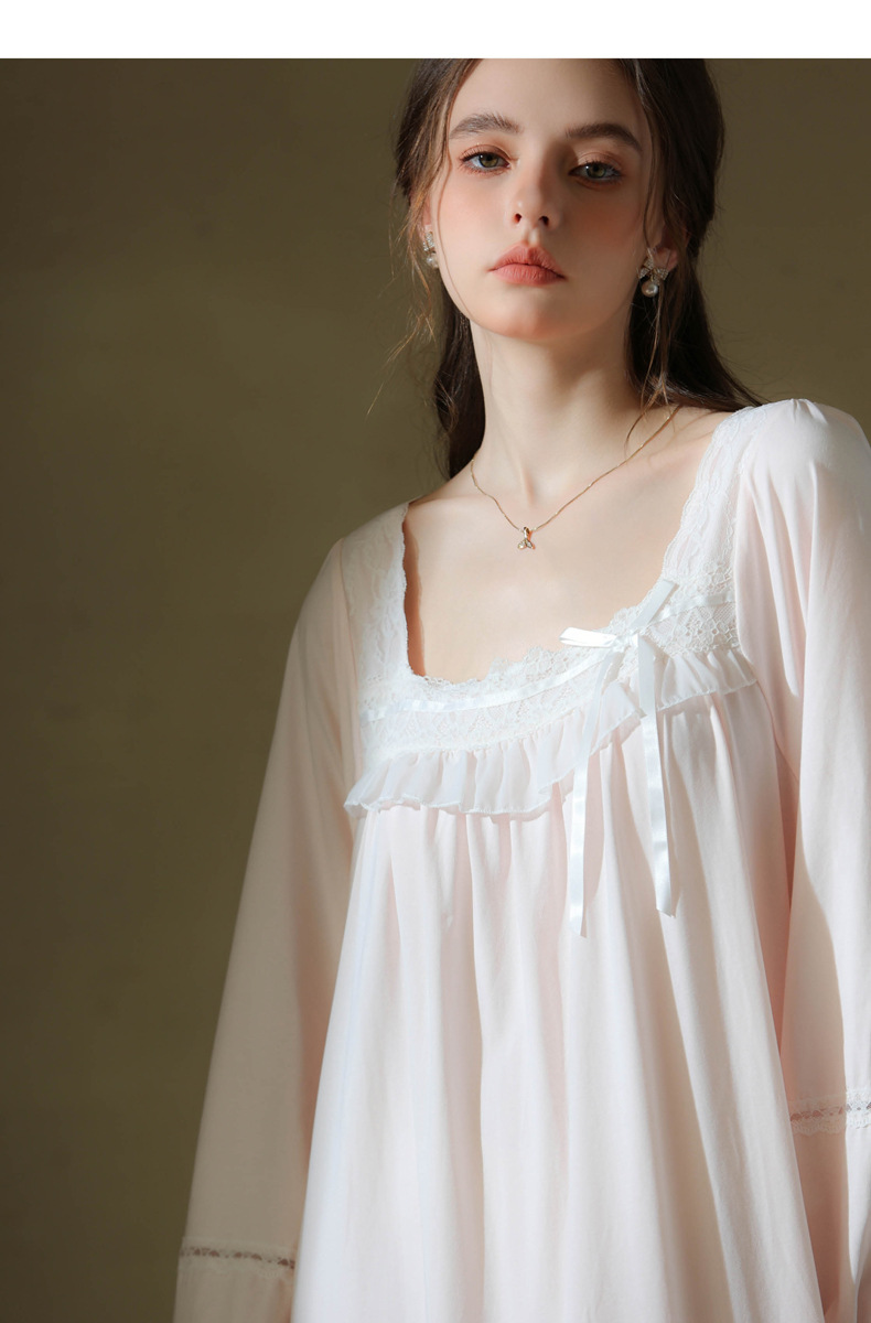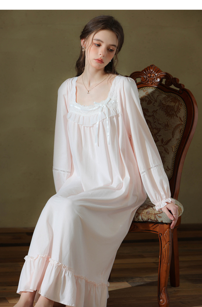 (总)洛兰沙家居馆 2026新款睡裙春秋长袖长款少女法式宫廷公主风宽松大码跨境批发甜美睡衣