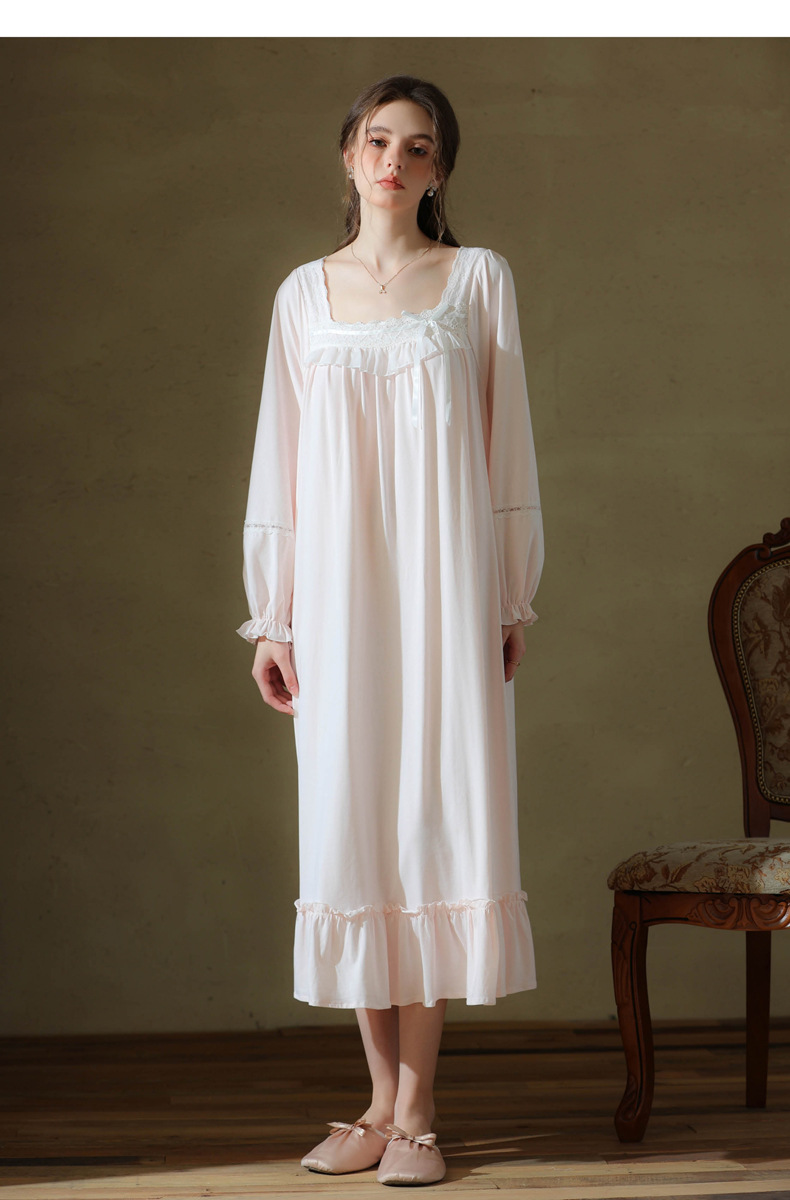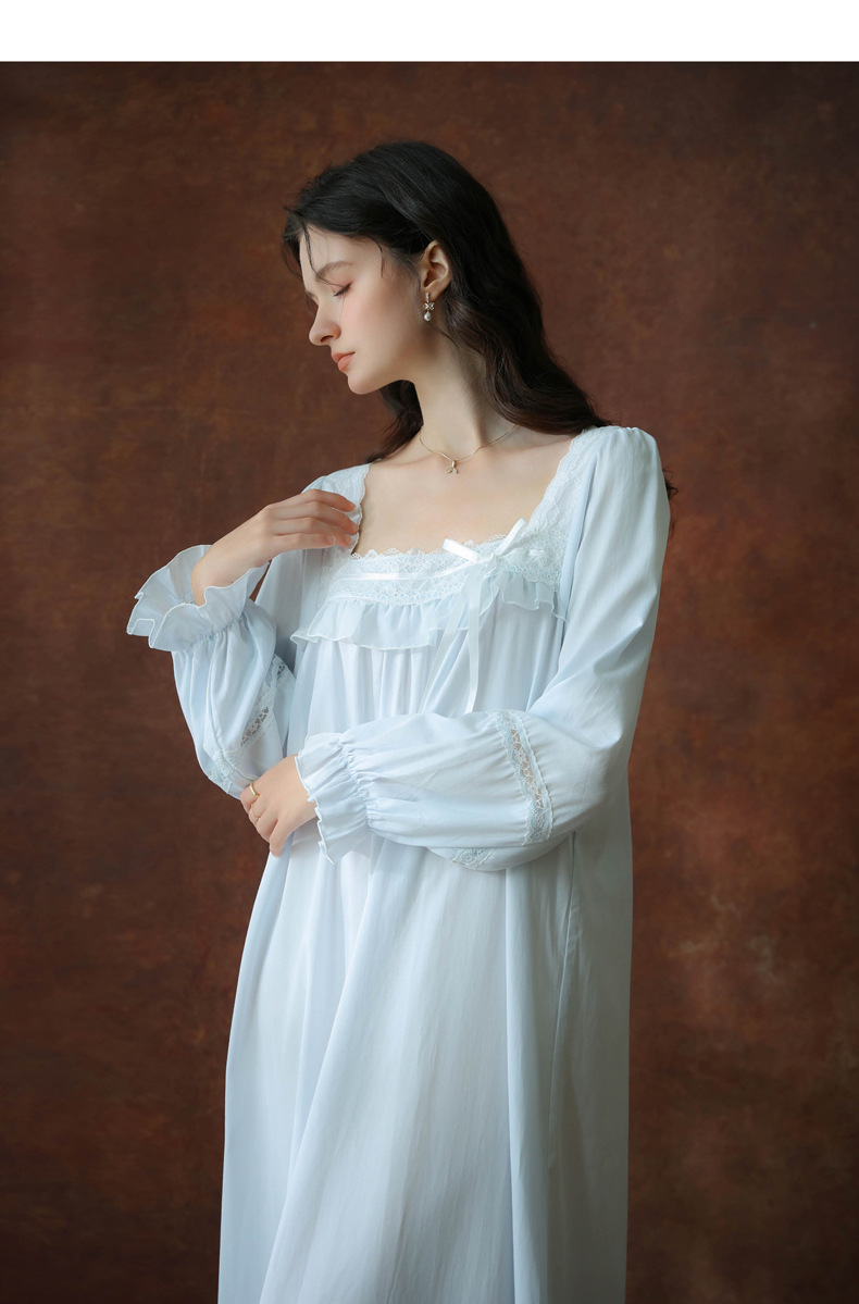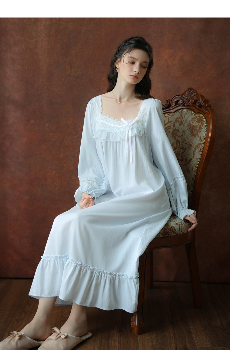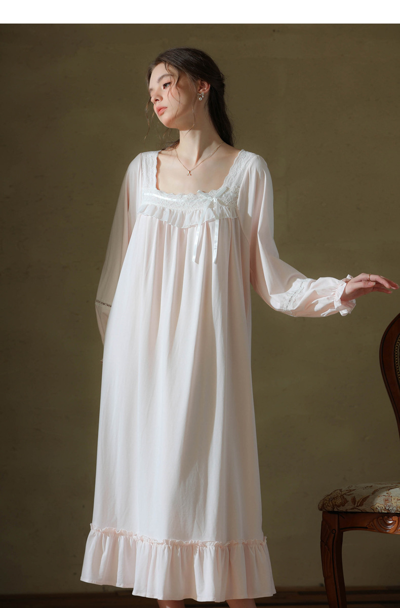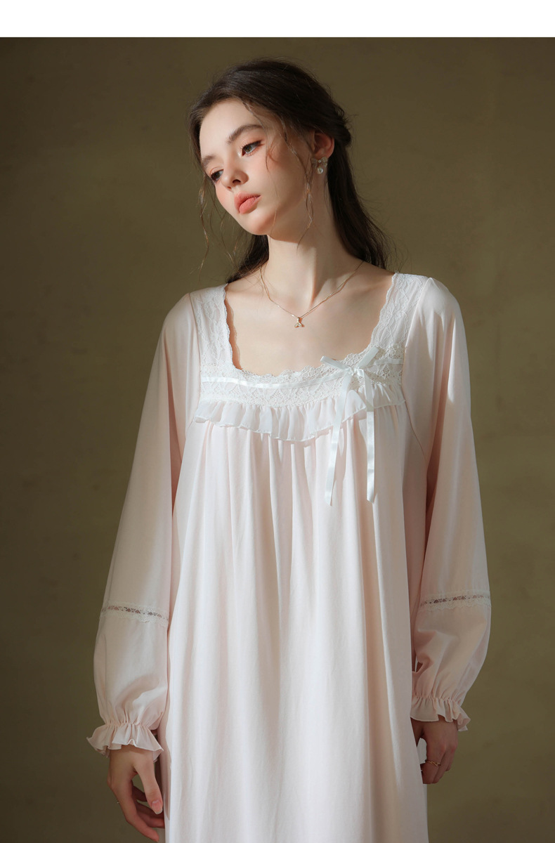 (总)洛兰沙家居馆 2026新款睡裙春秋长袖长款少女法式宫廷公主风宽松大码跨境批发甜美睡衣