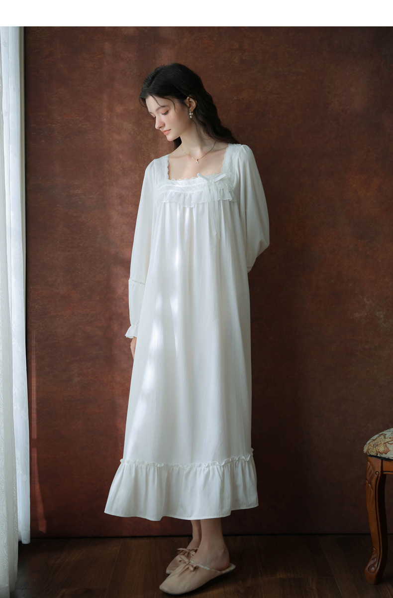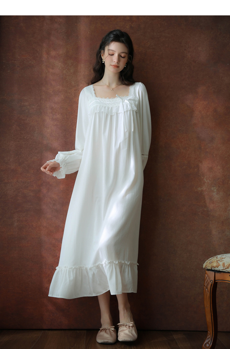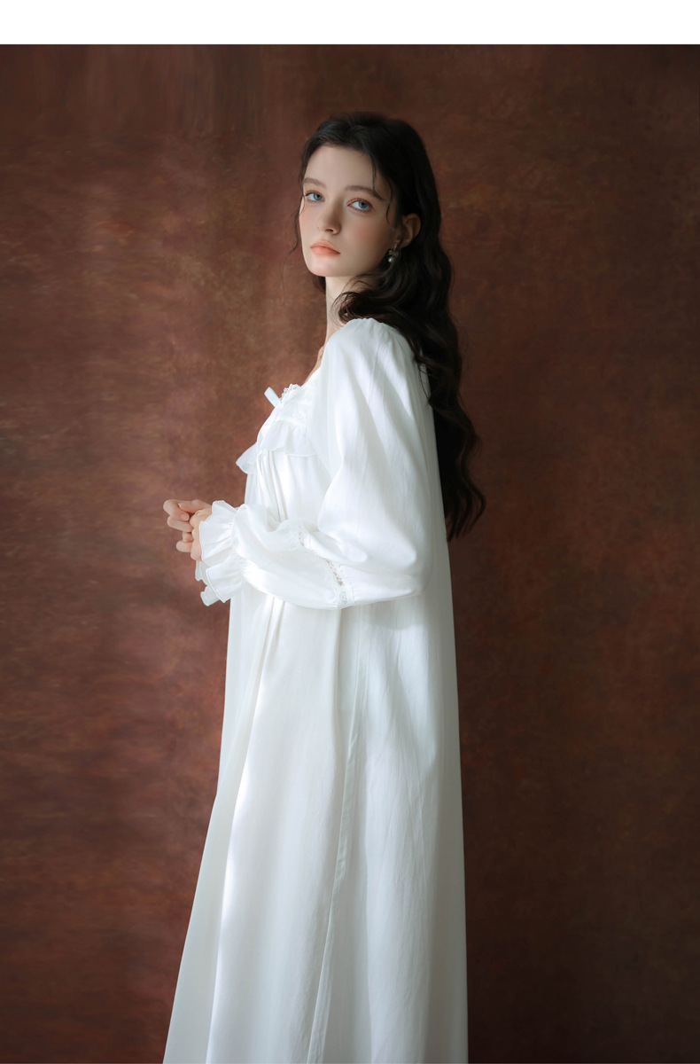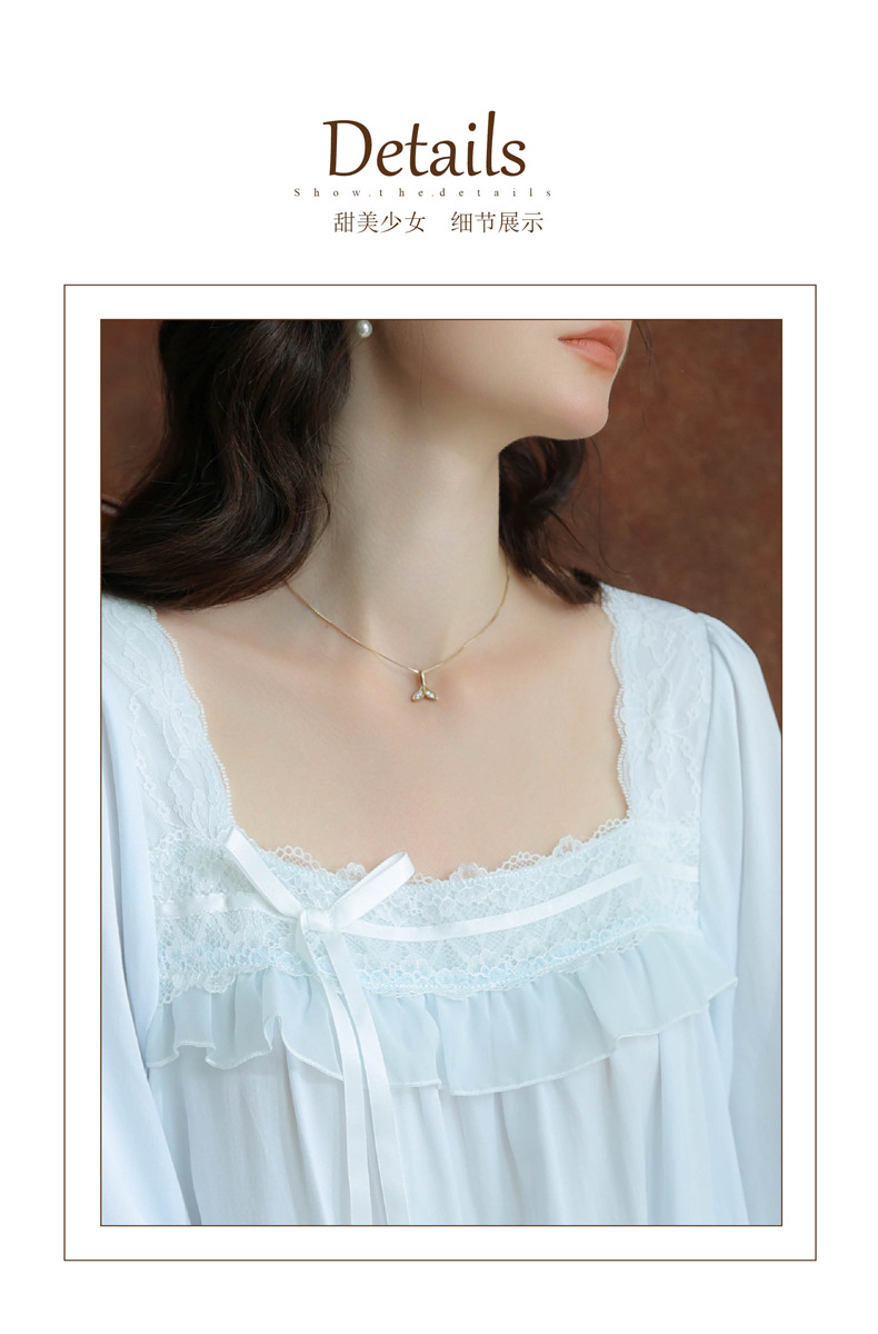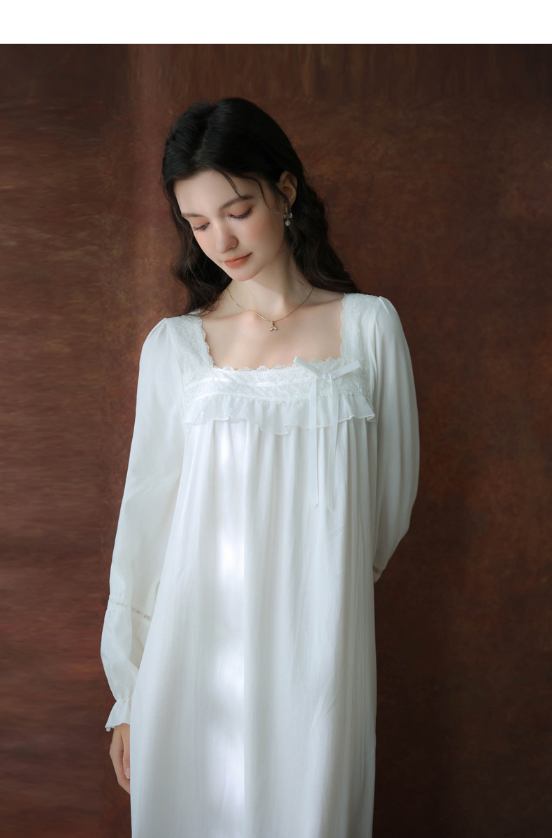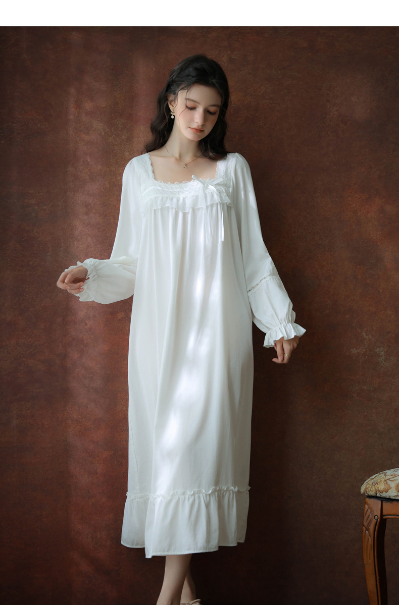 (总)洛兰沙家居馆 2026新款睡衣宫廷风少女甜美公主法式长裙春秋蕾丝跨境家居服长款睡裙,白色