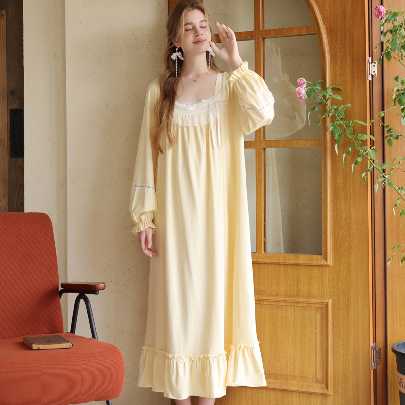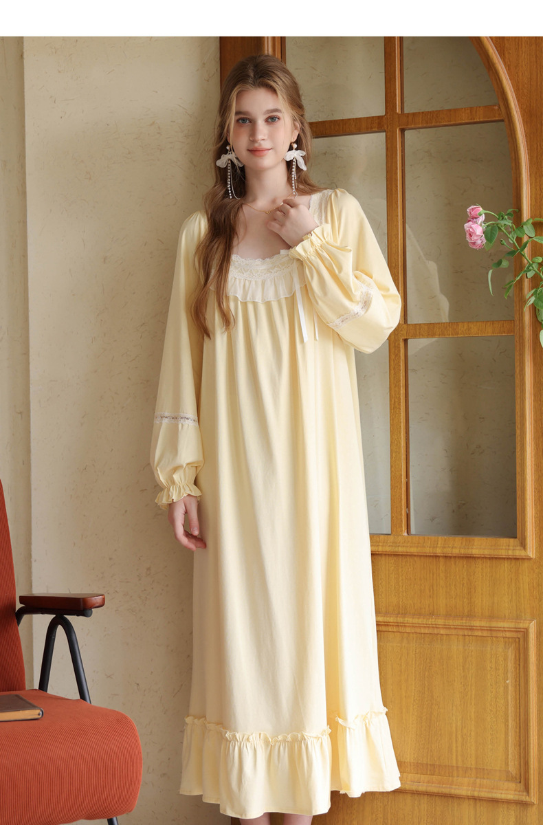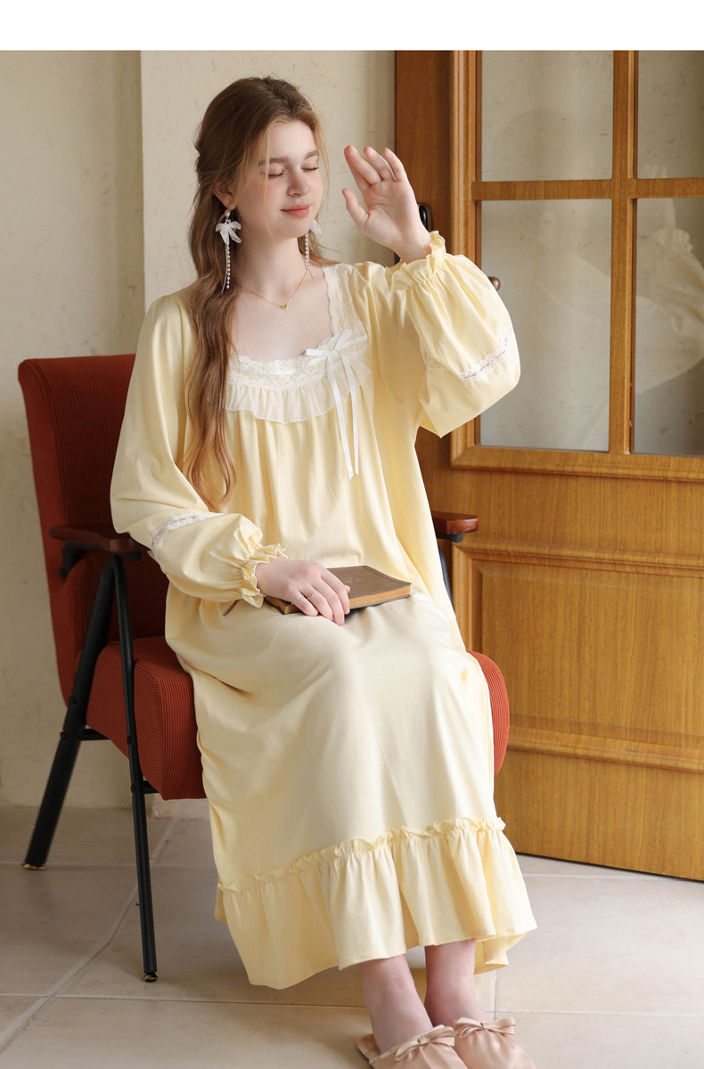 商品名称:(总)洛兰沙家居馆 2026新款睡裙春秋长袖长款少女法式宫廷公主风宽松大码跨境批发甜美睡衣