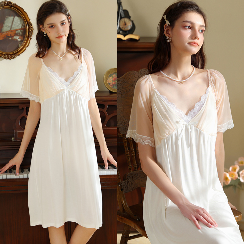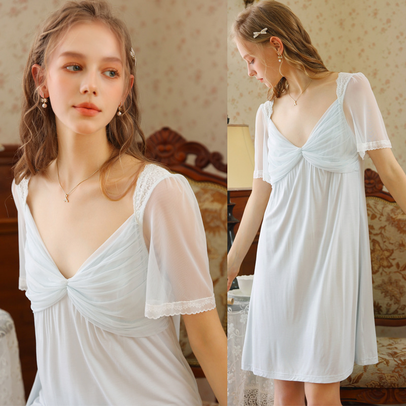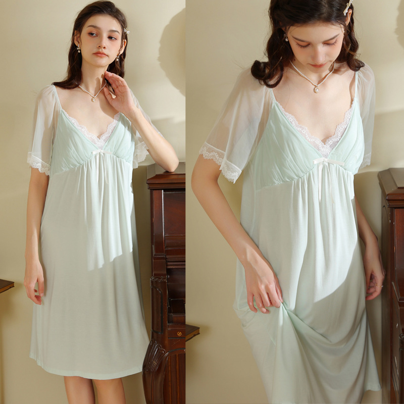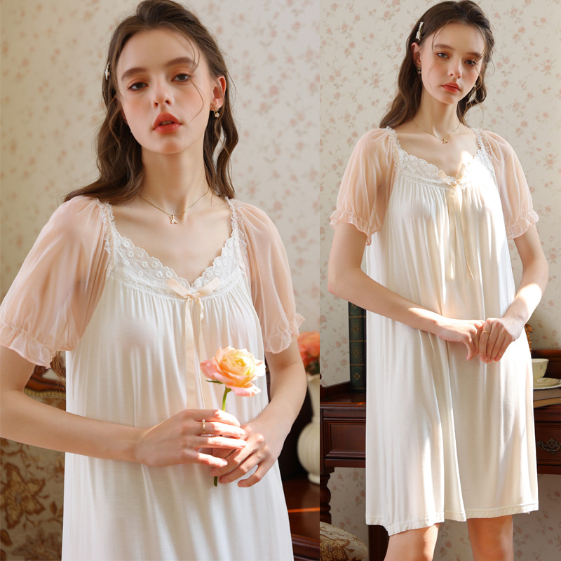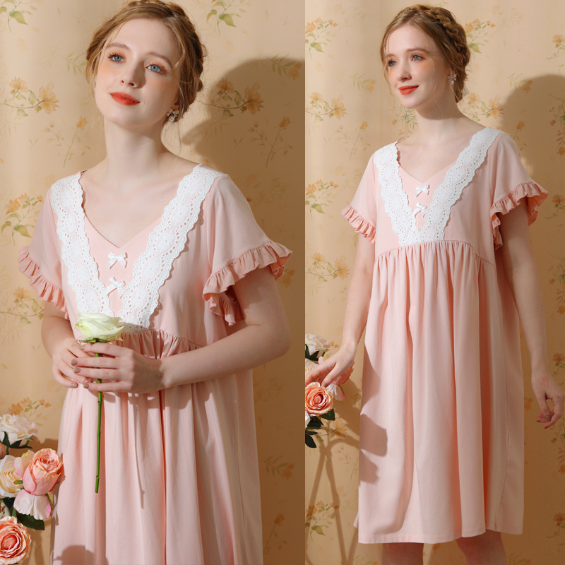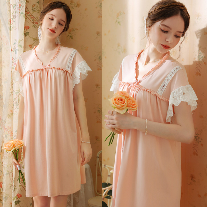 商品名称:(总)洛兰沙家居馆 2026新款清仓捡漏法式春夏睡裙少女薄款宽松大码跨境出口批发家居服尺码联系工厂客服