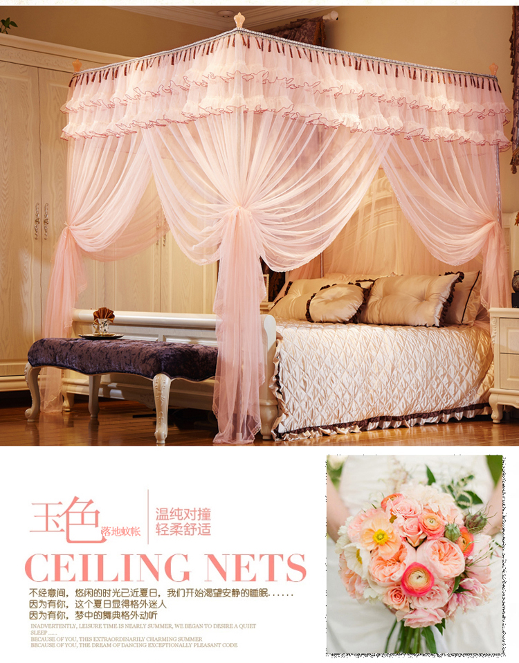 新太阳家纺 新款落地宫廷蚊帐—解语花玉色