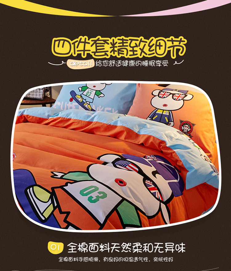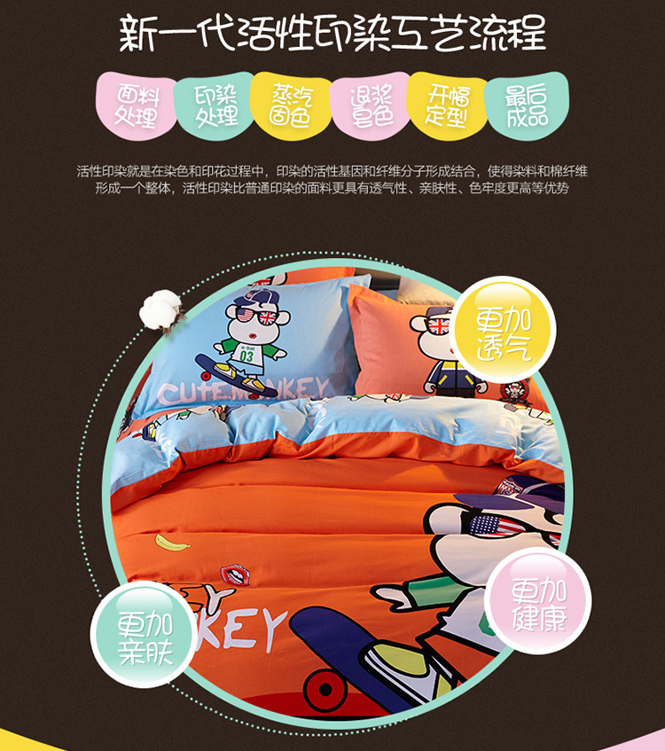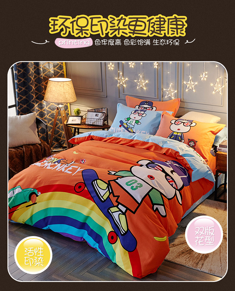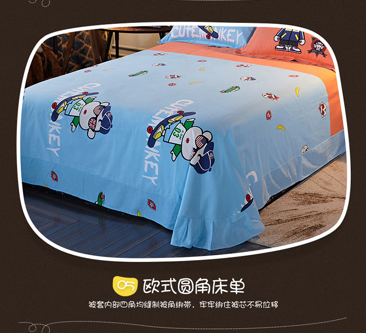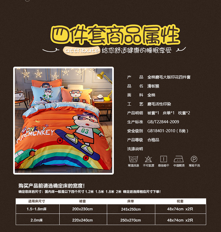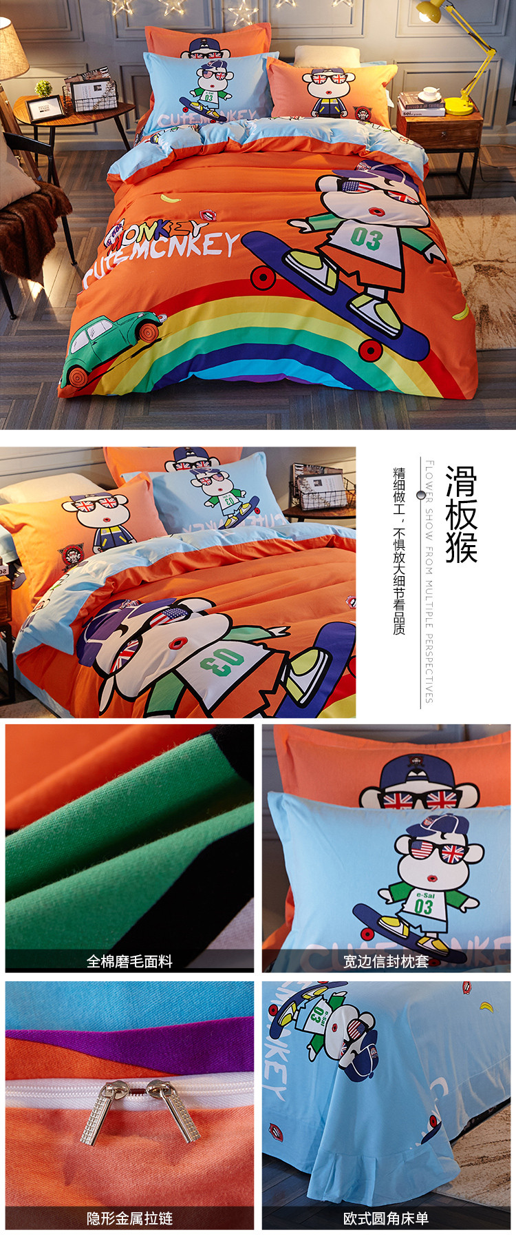 商品名称:芃成家纺 2017平网全棉四件套 滑板猴