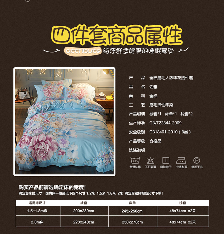 商品名称:芃成家纺 2017平网全棉四件套 佐雅