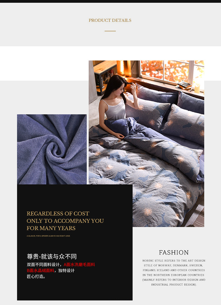 芃成家纺 水洗磨毛加绒四件套 加州迷情
