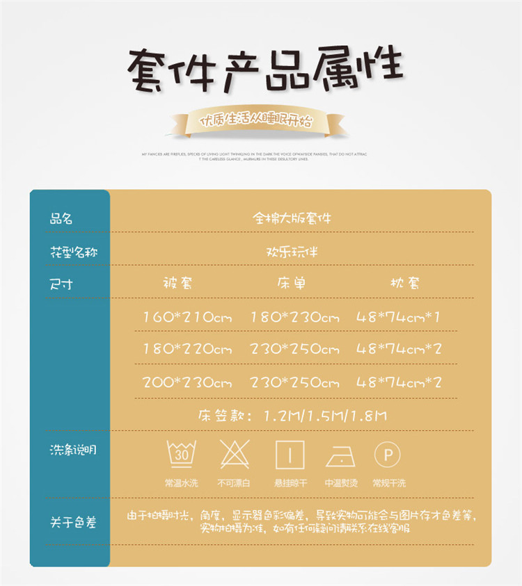 当前位置: 91家纺网 > 商品网购 > 床品套件 > 四件套 > 全棉普通四件套 > 涵宸家纺 大版全棉平网系列 (多规格)套件床单款 欢乐玩伴