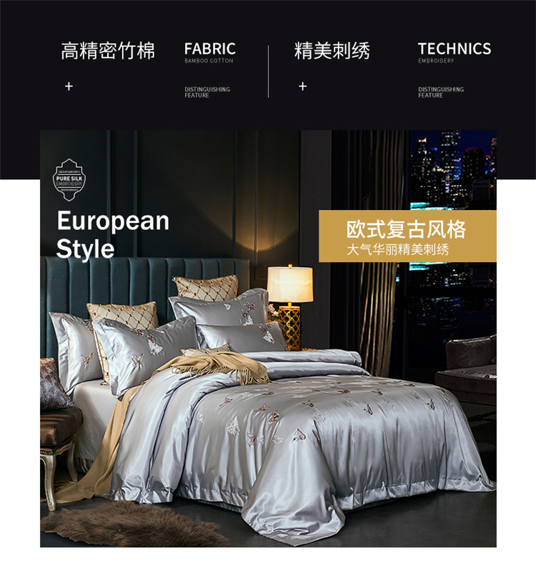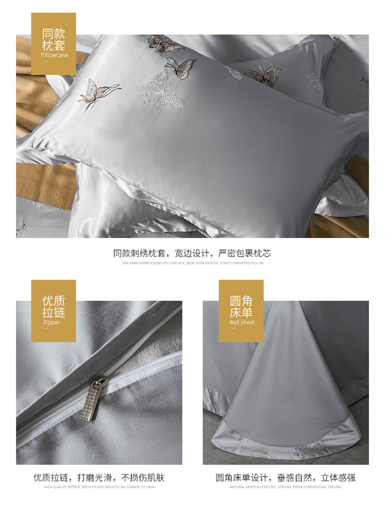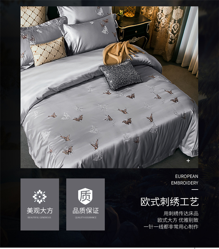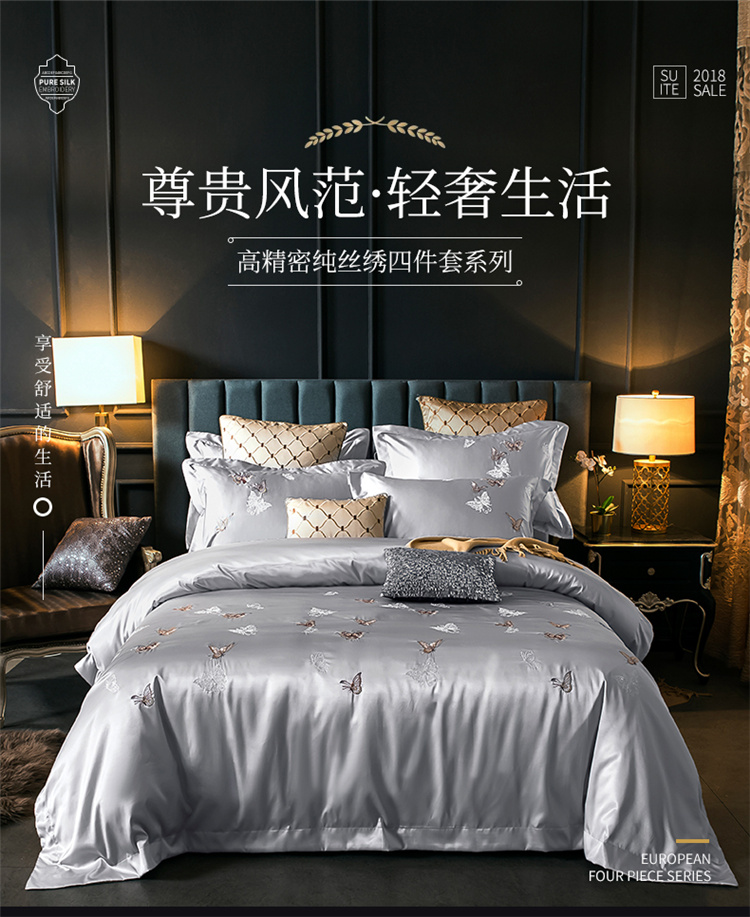 千禧婚庆专供 高精密纯丝绣 夏洛特-银灰