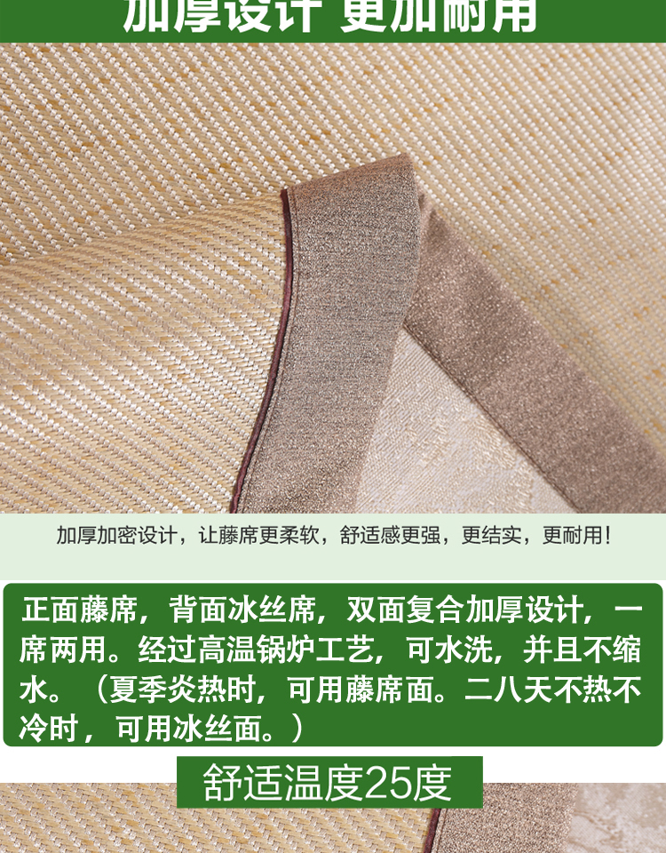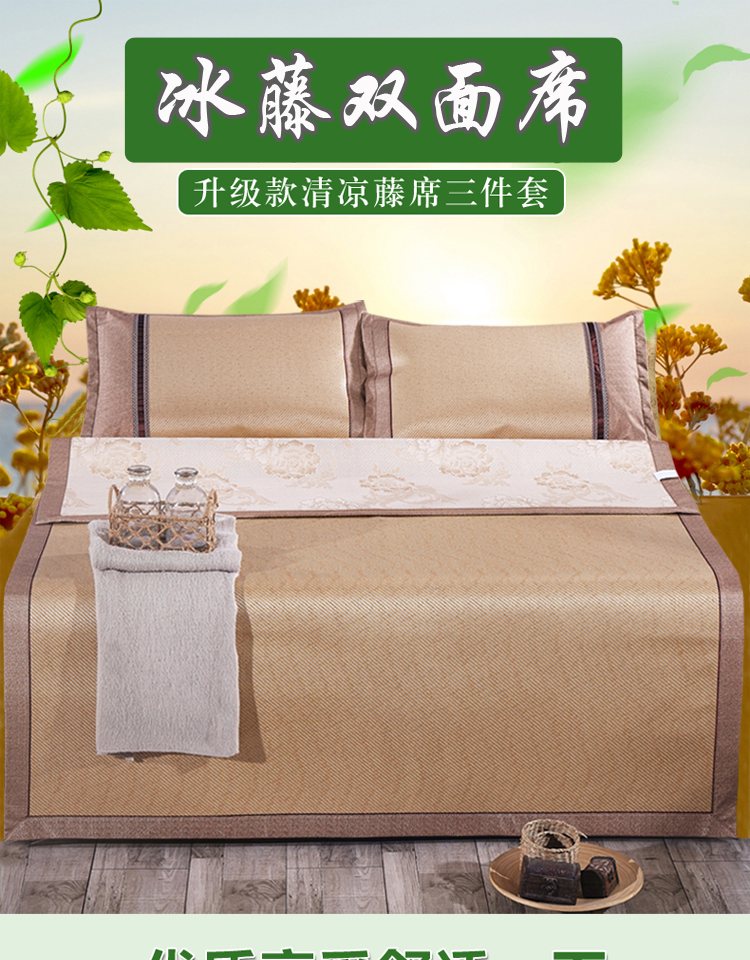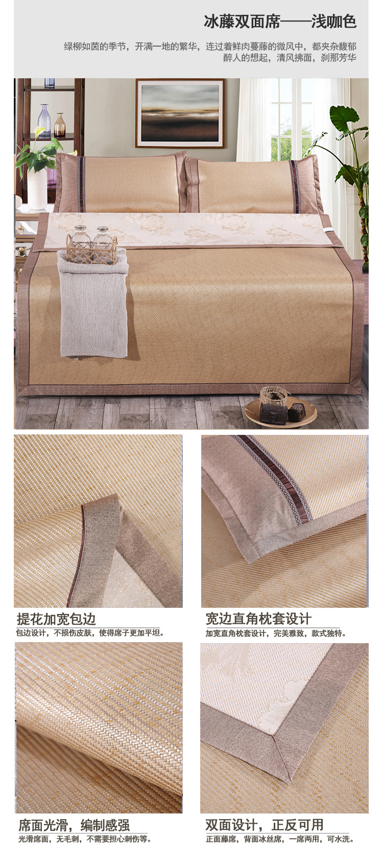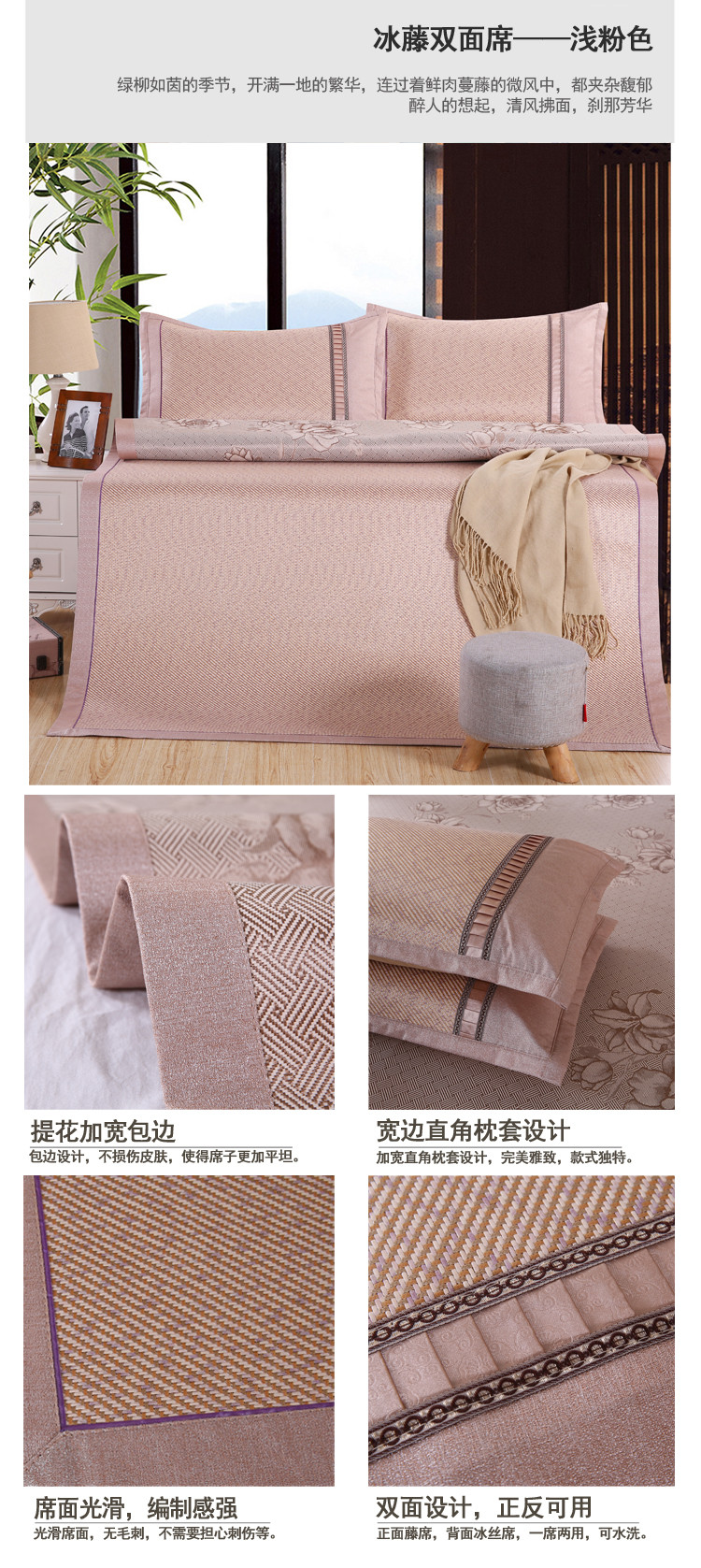 商品名称:【品质】可水洗冰藤彩麻双面席加厚凉席冰丝席藤席三件套席子竹席
