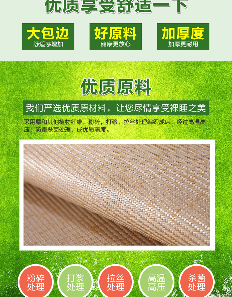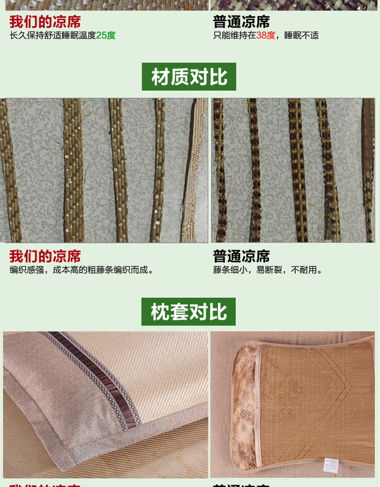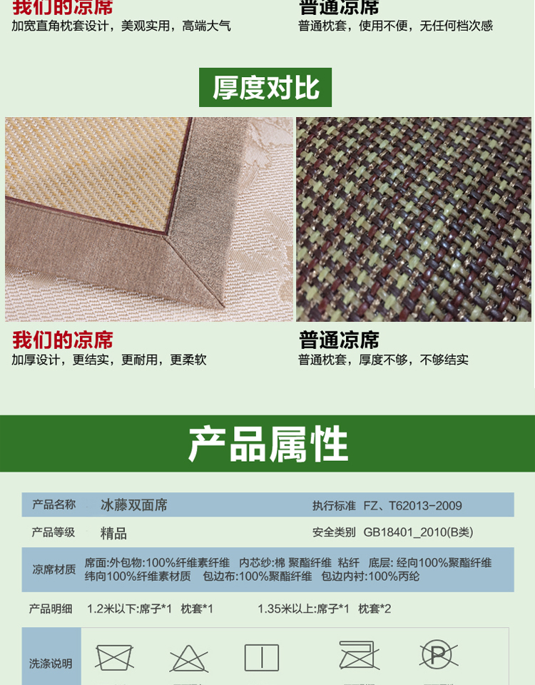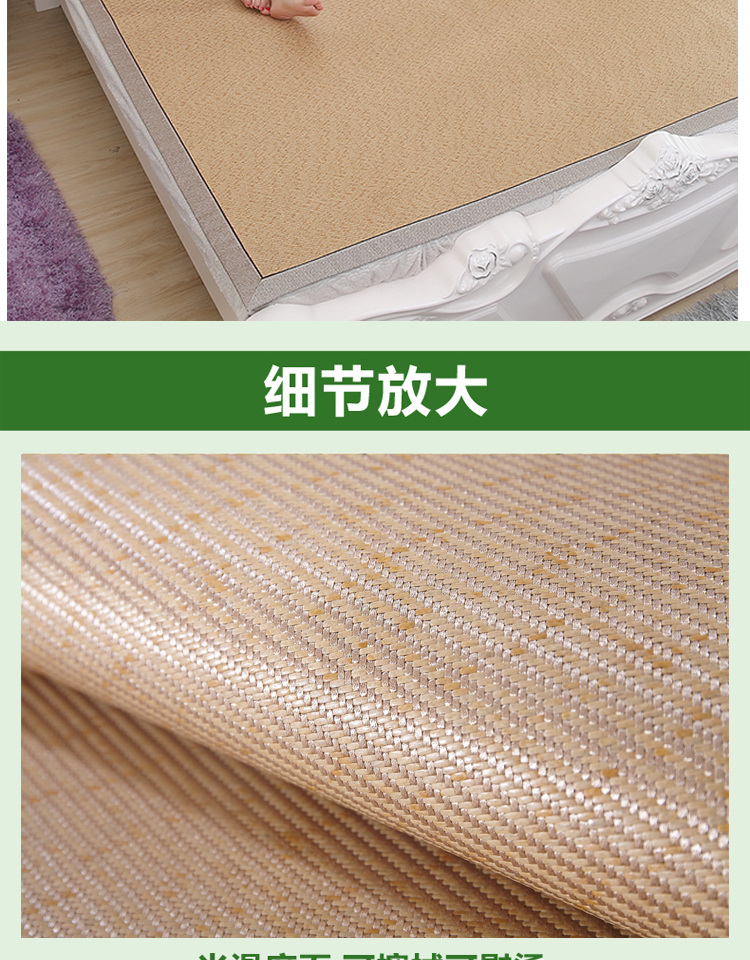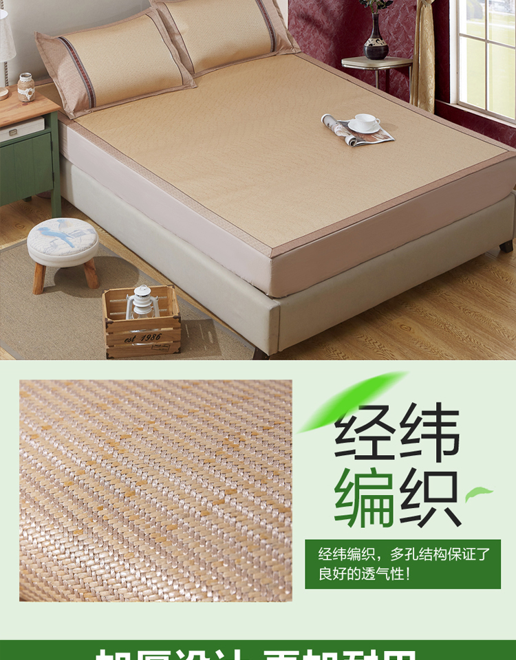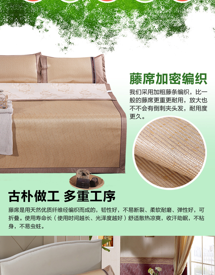 商品名称:【品质】可水洗冰藤彩麻双面席加厚凉席冰丝席藤席三件套席子竹席