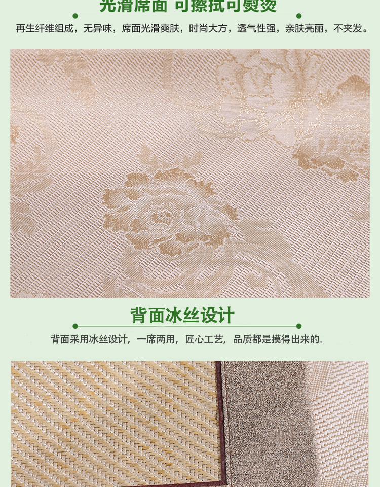 2023新款夏日冰点-冰藤双面席凉席藤席竹席冰丝席乳胶席,咖色,蓝色,绿色,香槟