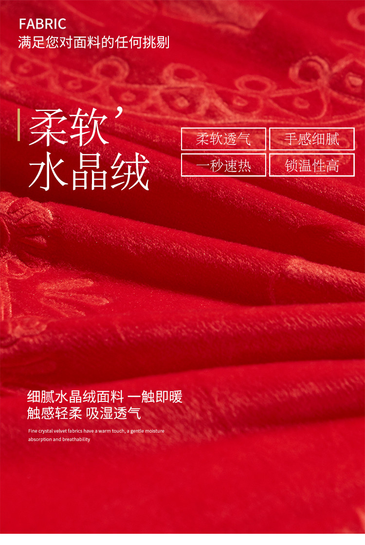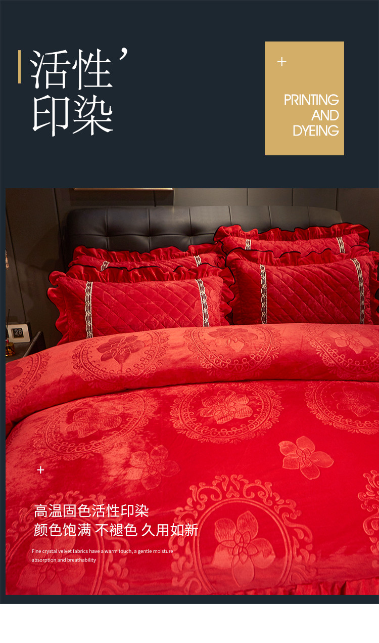 (总)宜凡家纺 2025新款婴儿绒压花全夹棉床盖四件套,韵雅-中国红,韵雅-黑天鹅