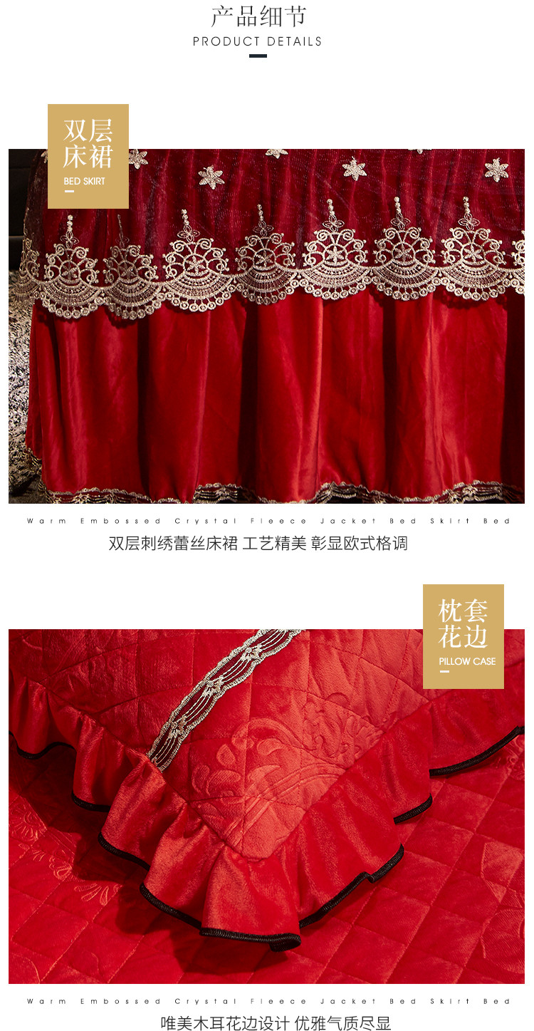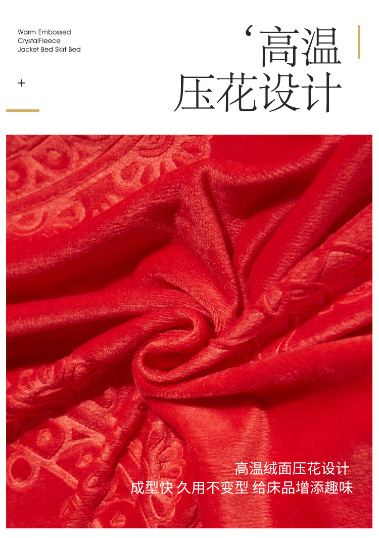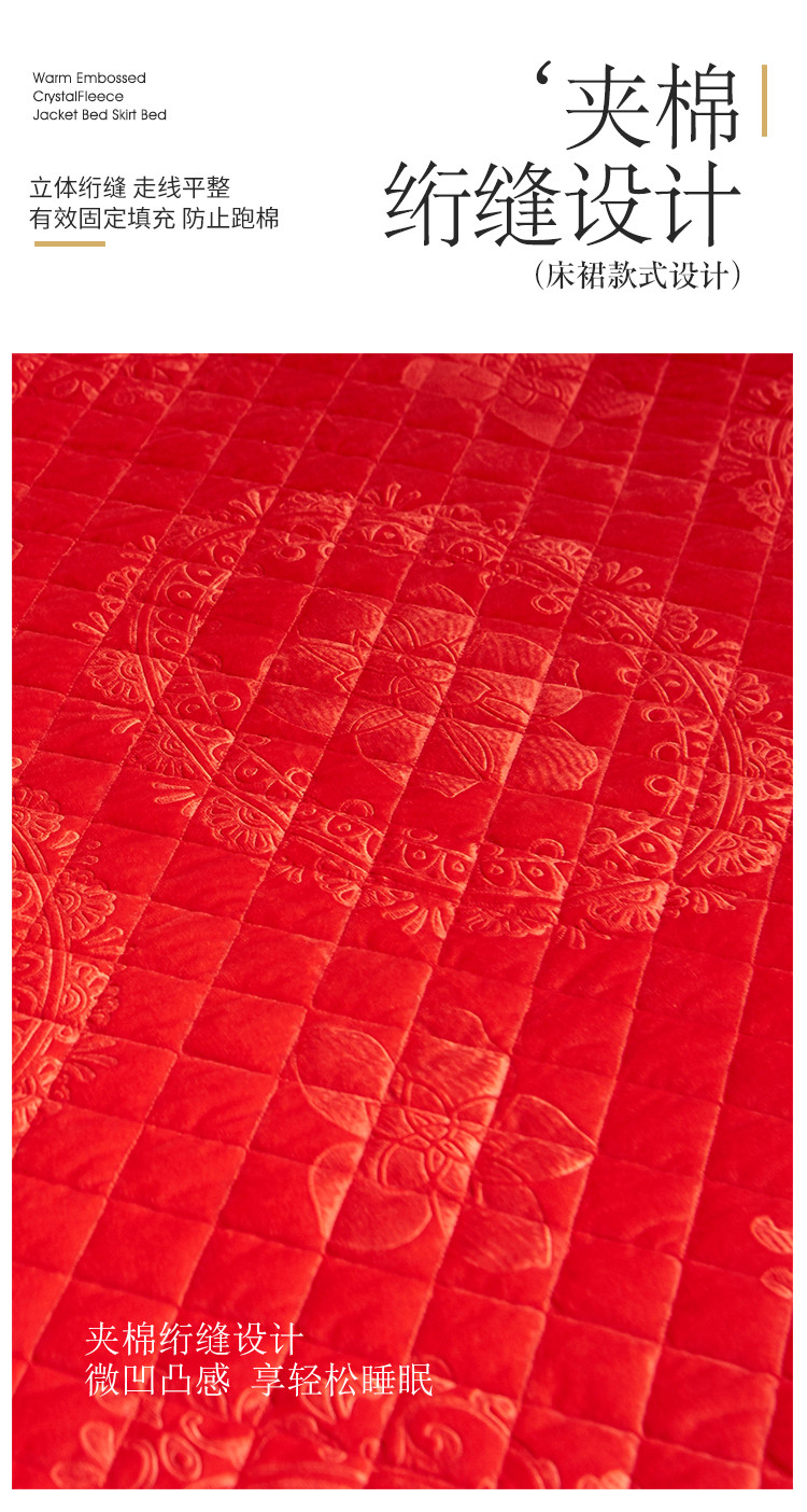 (总)宜凡家纺 2025新款婴儿绒压花全夹棉床裙四件套,韵雅-中国红,韵雅-黑天鹅