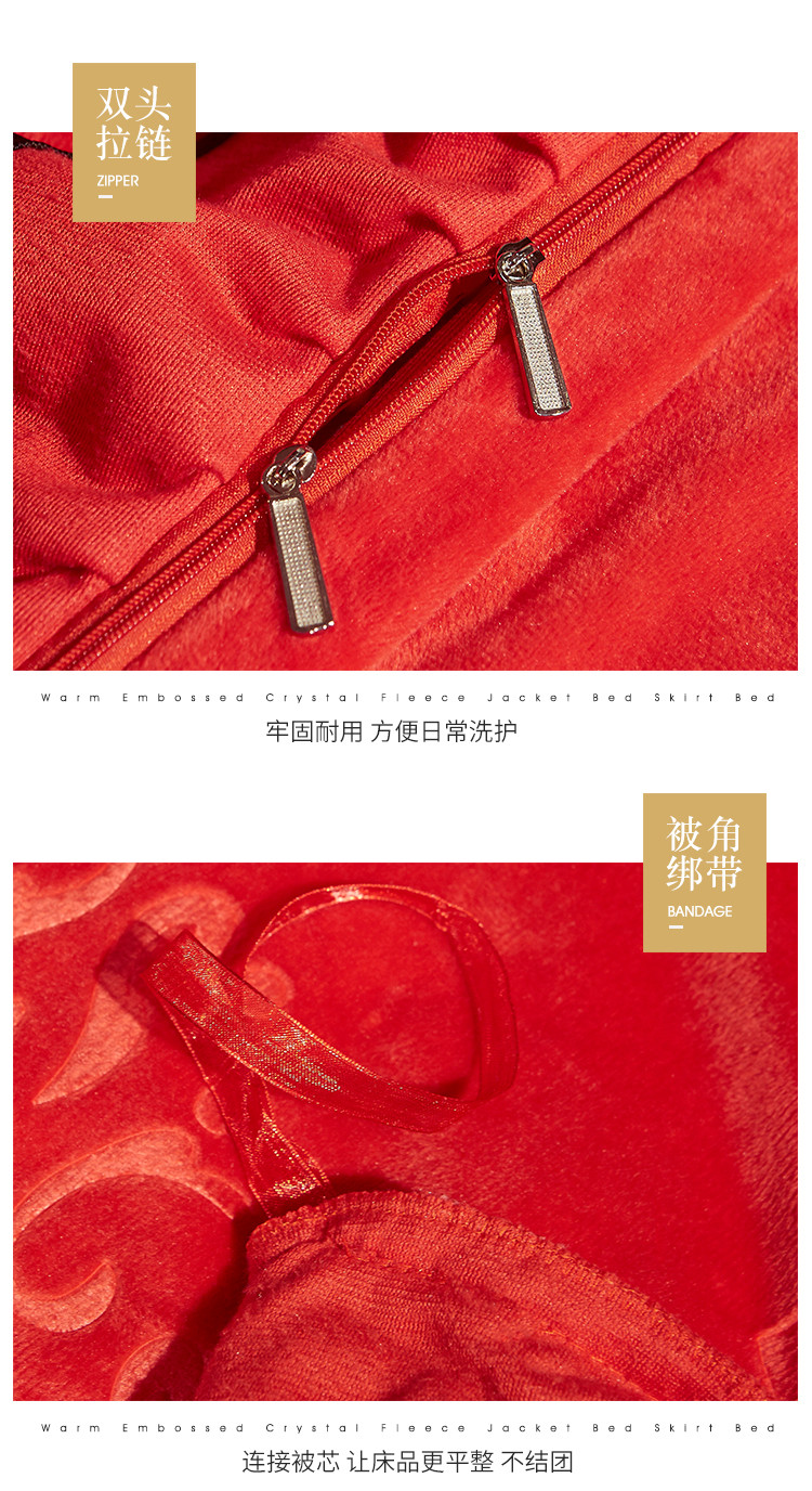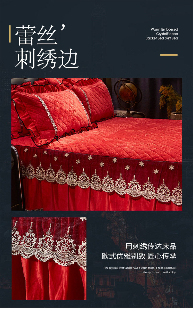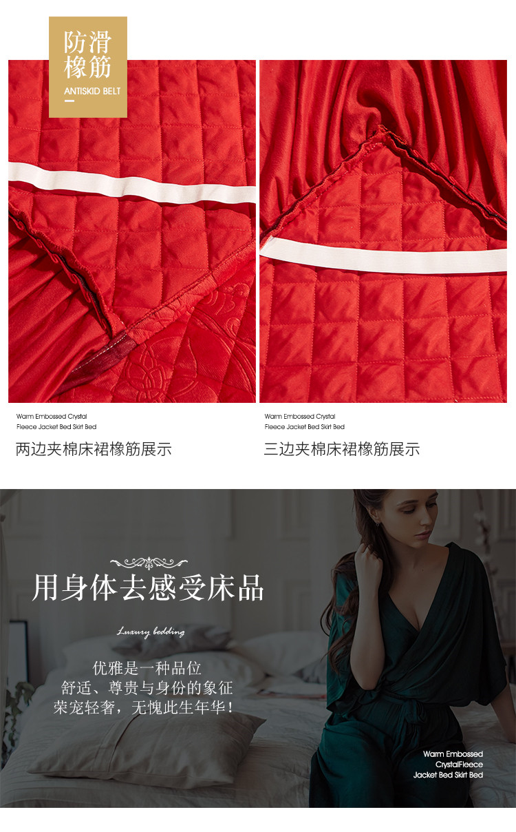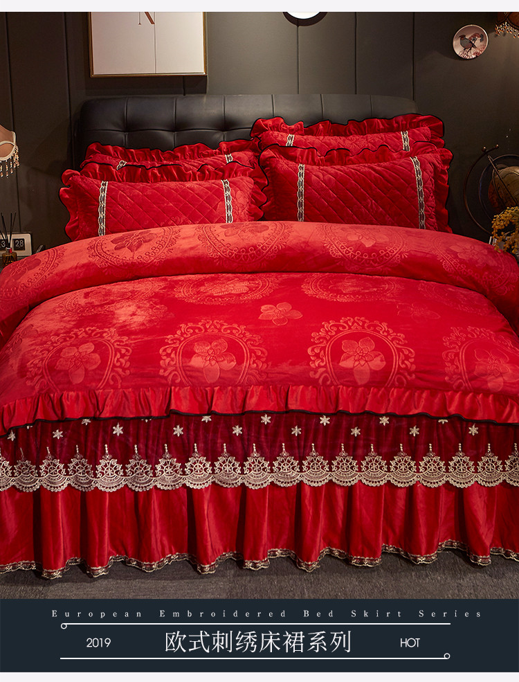 (总)宜凡家纺 2025新款婴儿绒压花全夹棉床裙四件套,韵雅-中国红,韵雅-黑天鹅