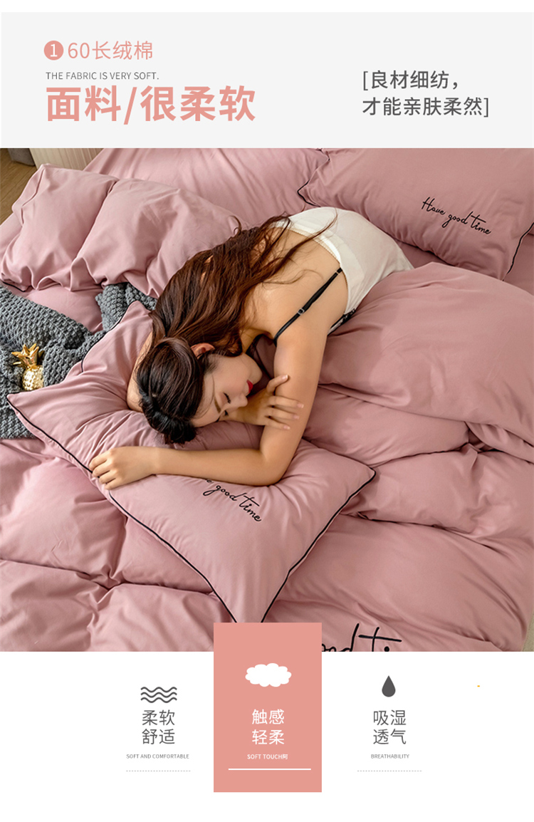 意尚风情2019新款60长绒棉绣花工艺款四件套美好时光-豆沙