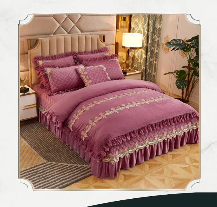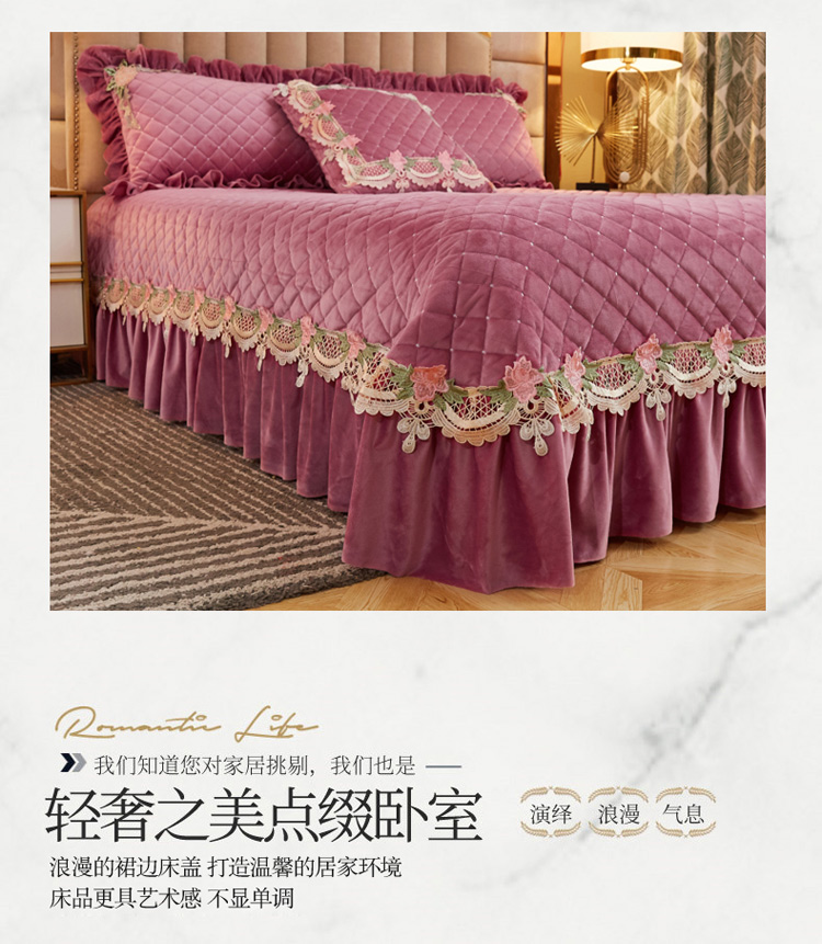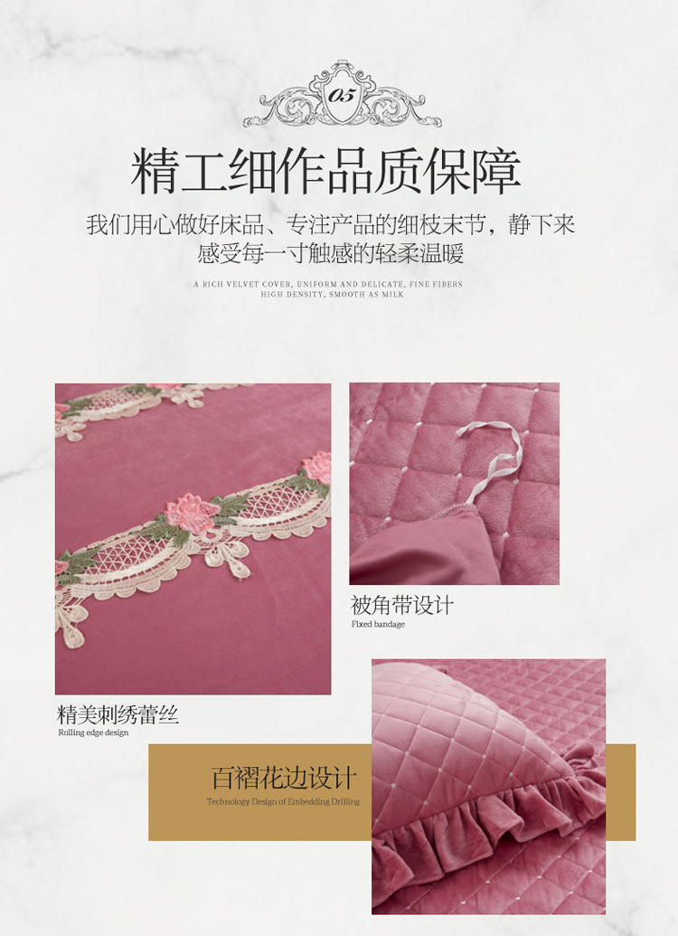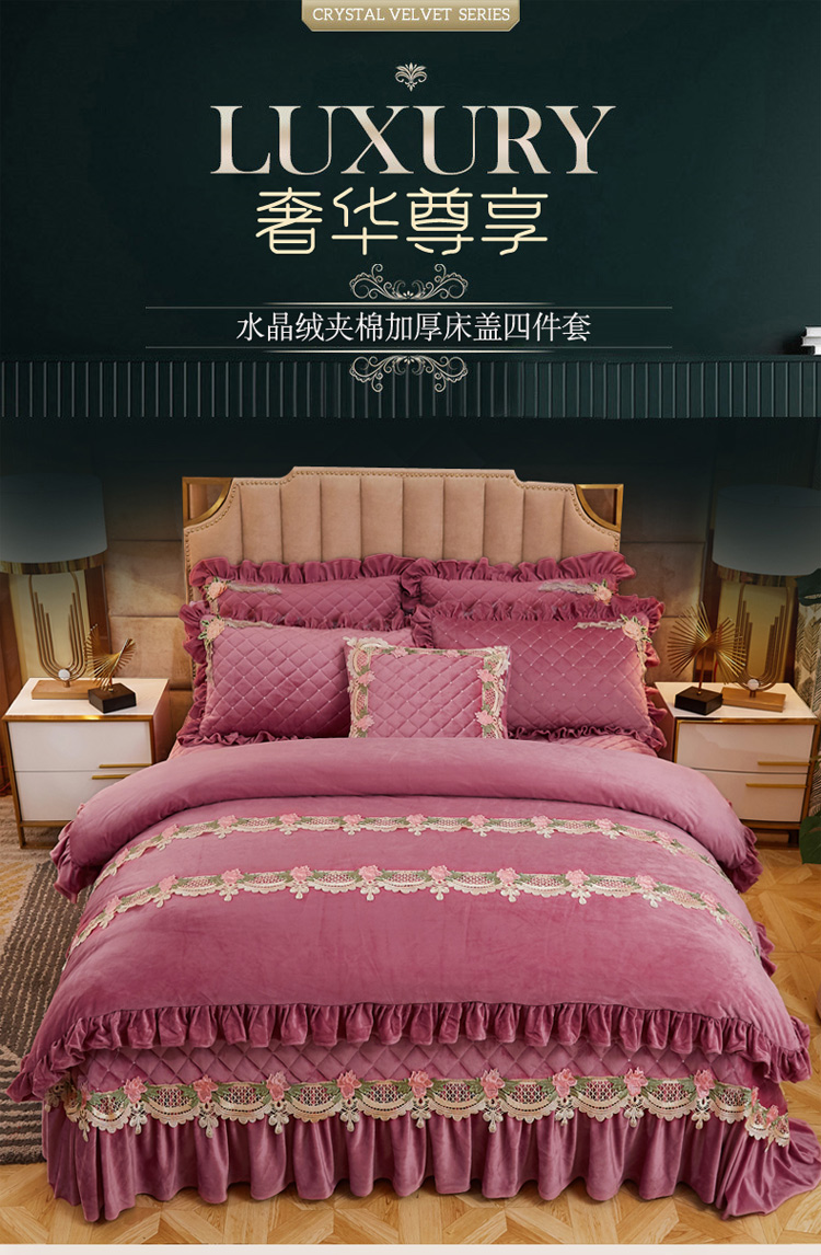 商品名称:菊上家纺 2021雅典娜水晶绒加厚夹棉床盖四件套 豆沙粉