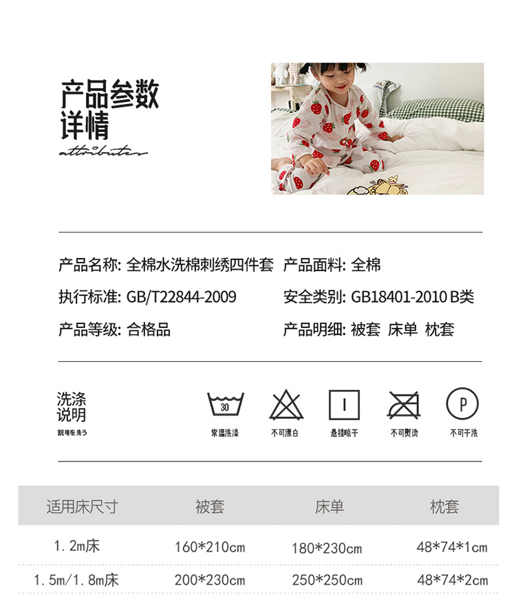 商品名称:(总)孩子王家纺 2023新款ab版全棉水洗棉三四件套床笠款