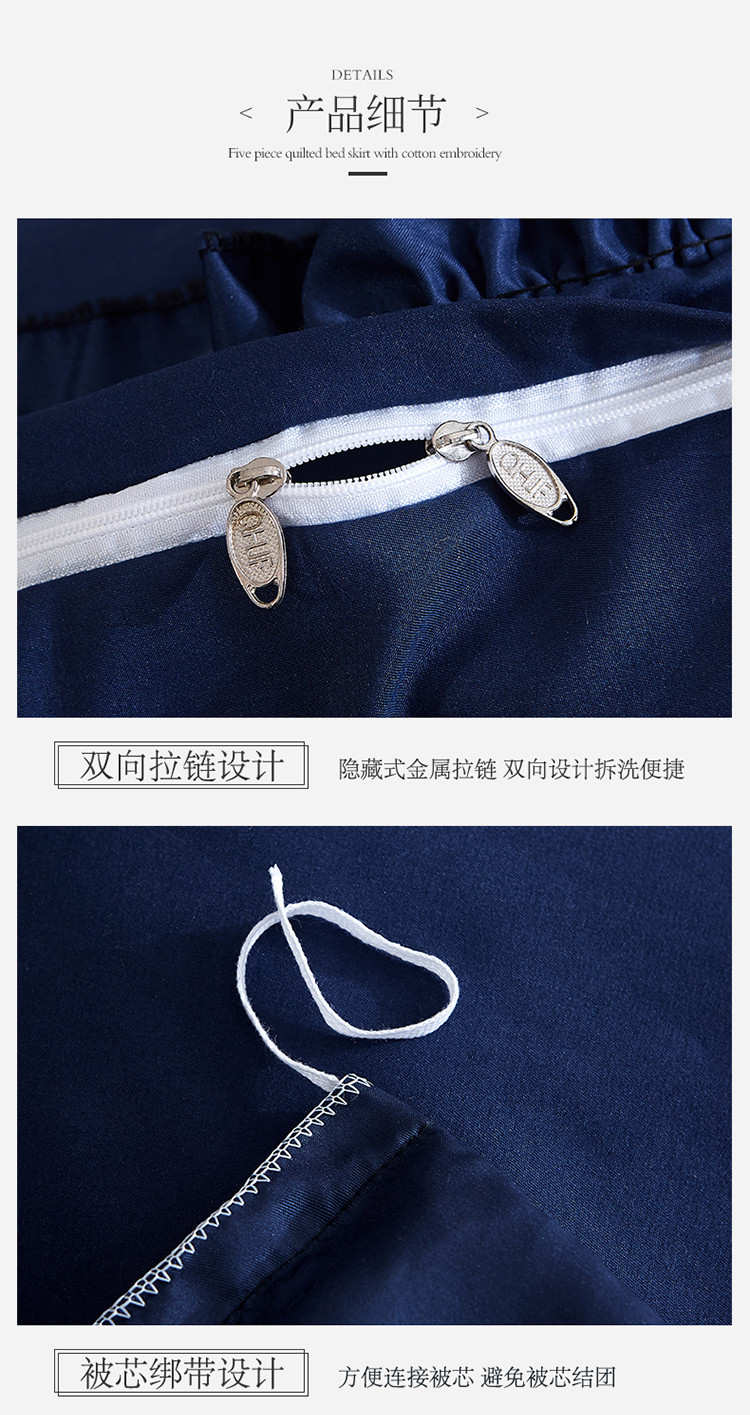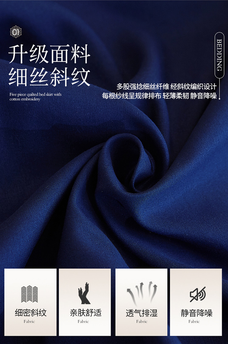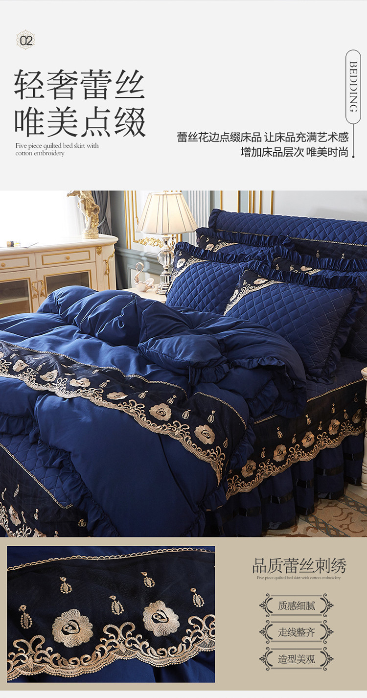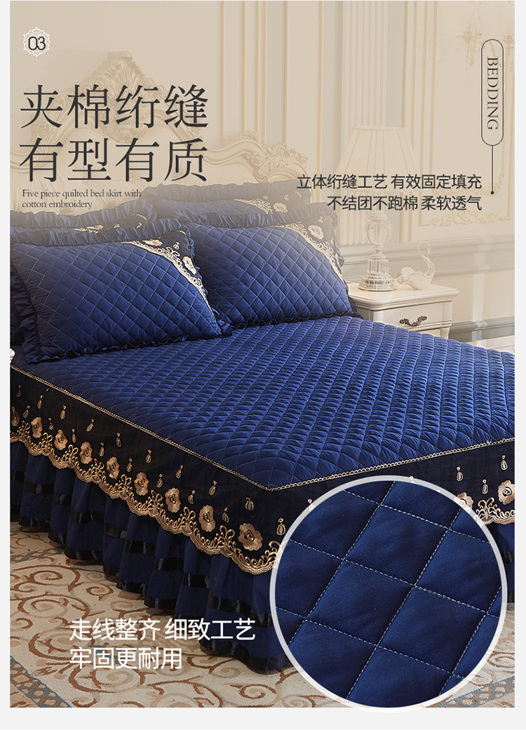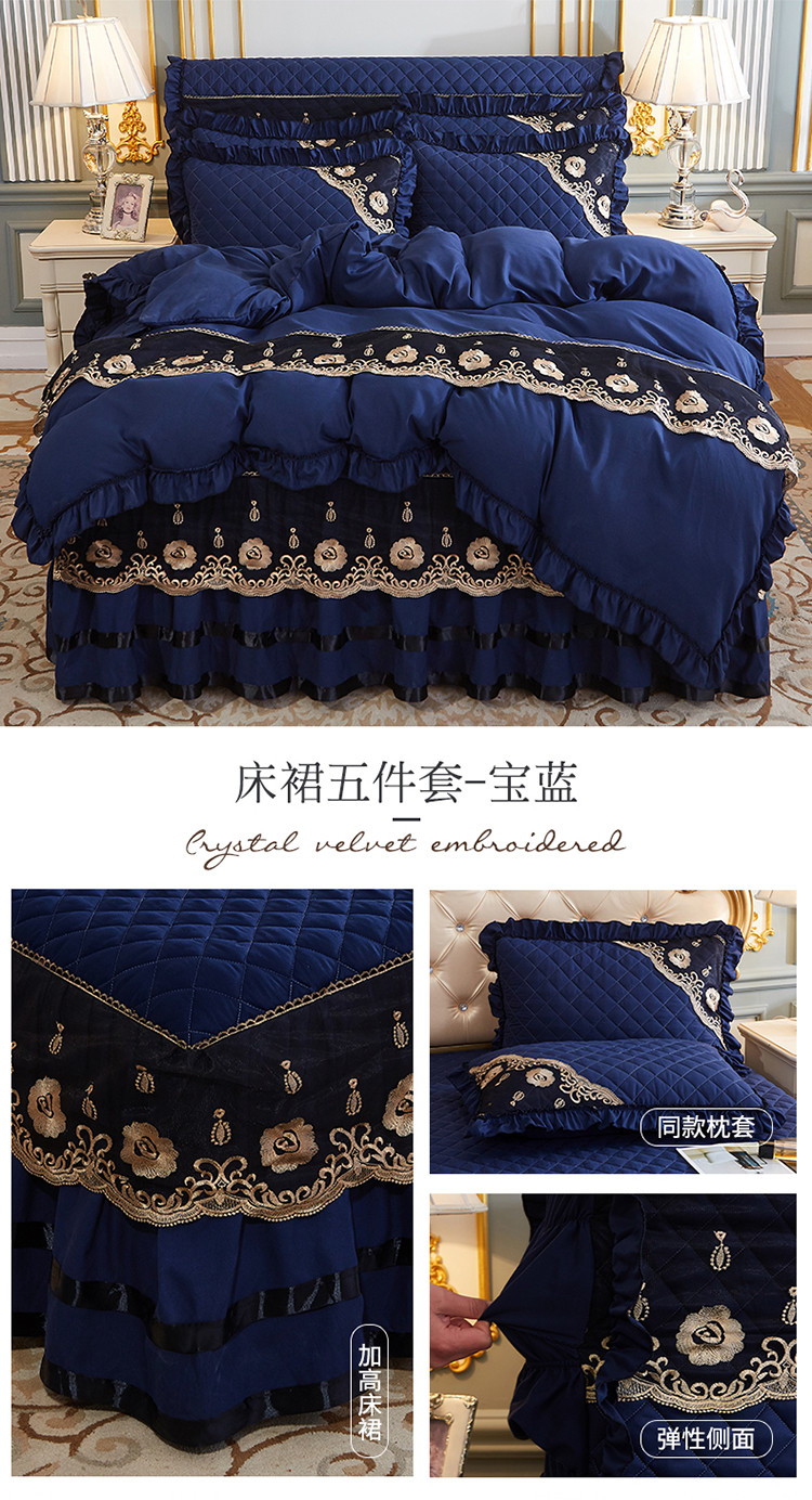 商品名称:情恒家纺2025新款四季款细丝斜纹夹棉床裙五件套 宝蓝