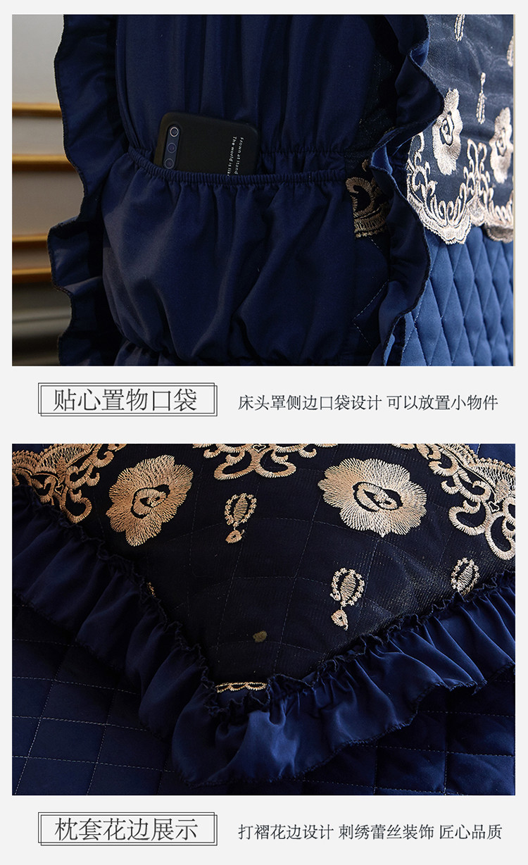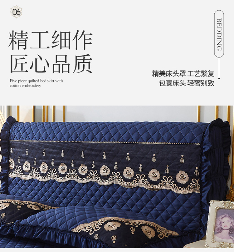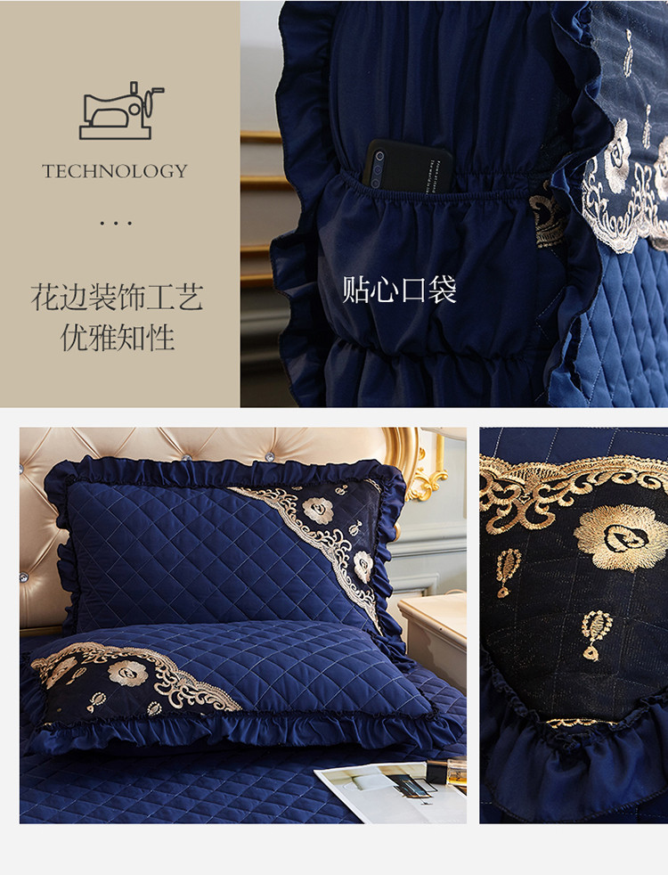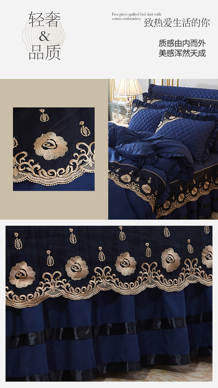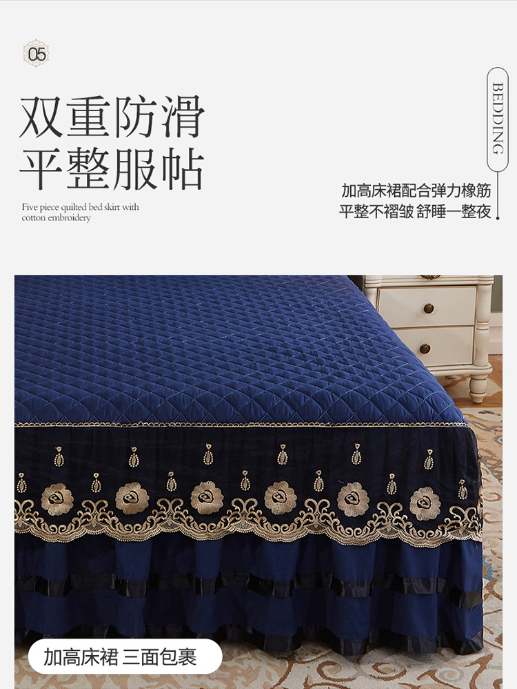 商品名称:情恒家纺2025新款四季款细丝斜纹夹棉床裙五件套 宝蓝