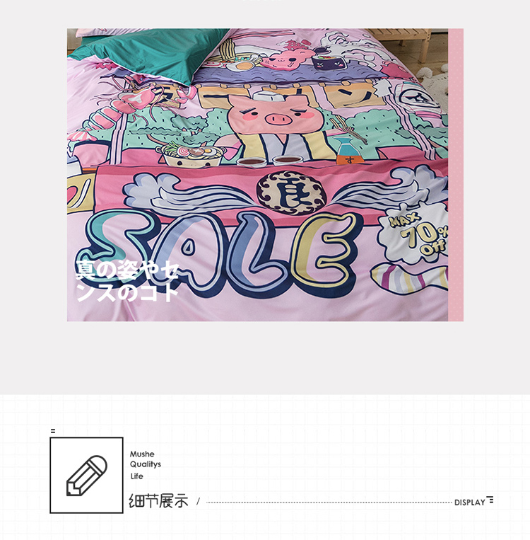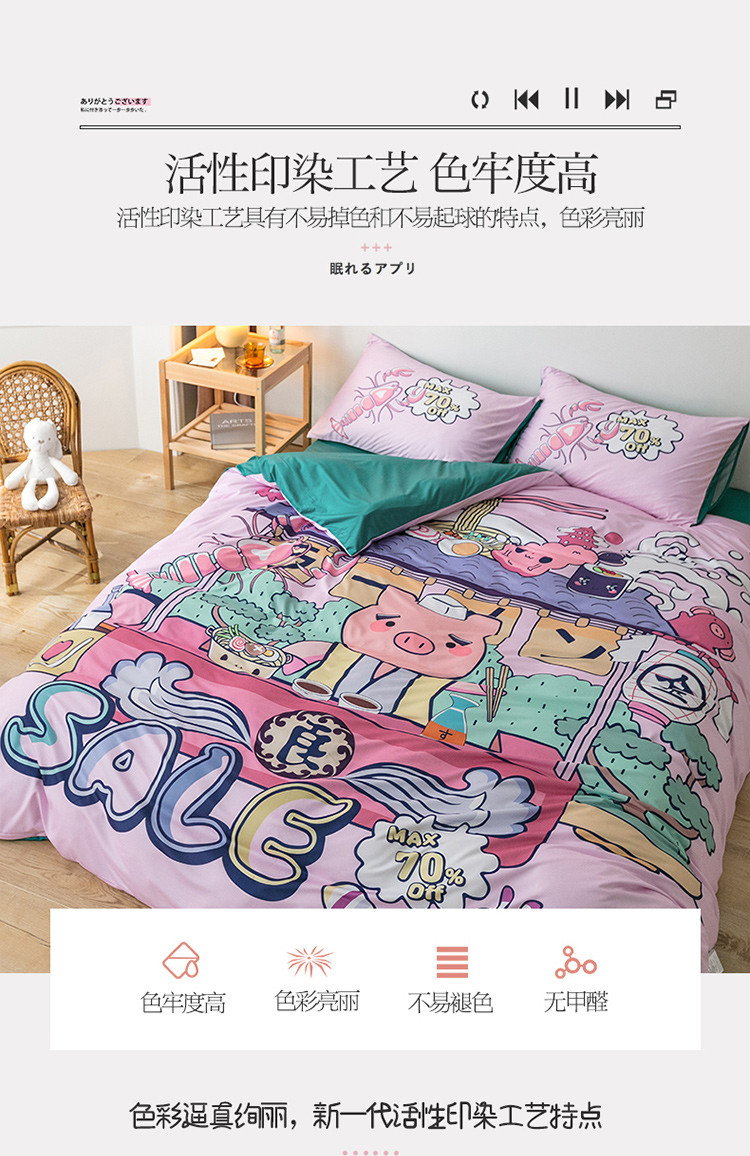 商品名称:爱缦 2020新款日系针织棉平网四件套 拉面小猪