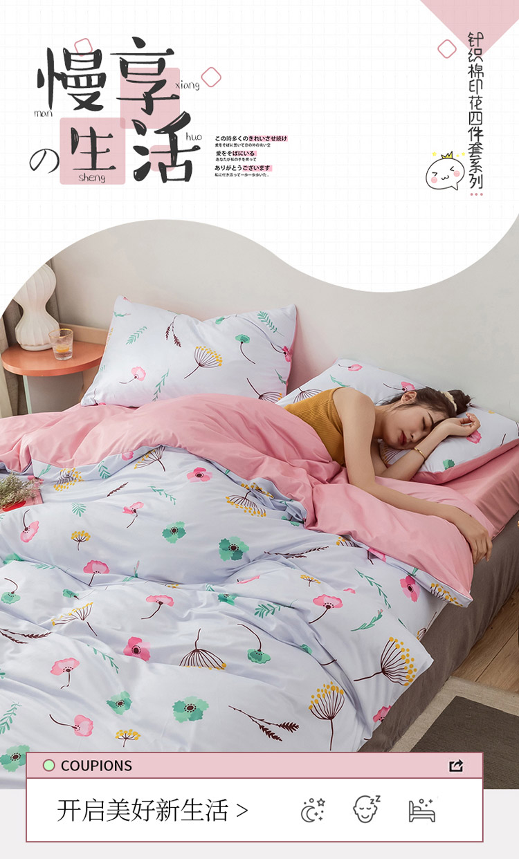 爱缦 2020新款日系针织棉小版四件套 飞舞蒲公英