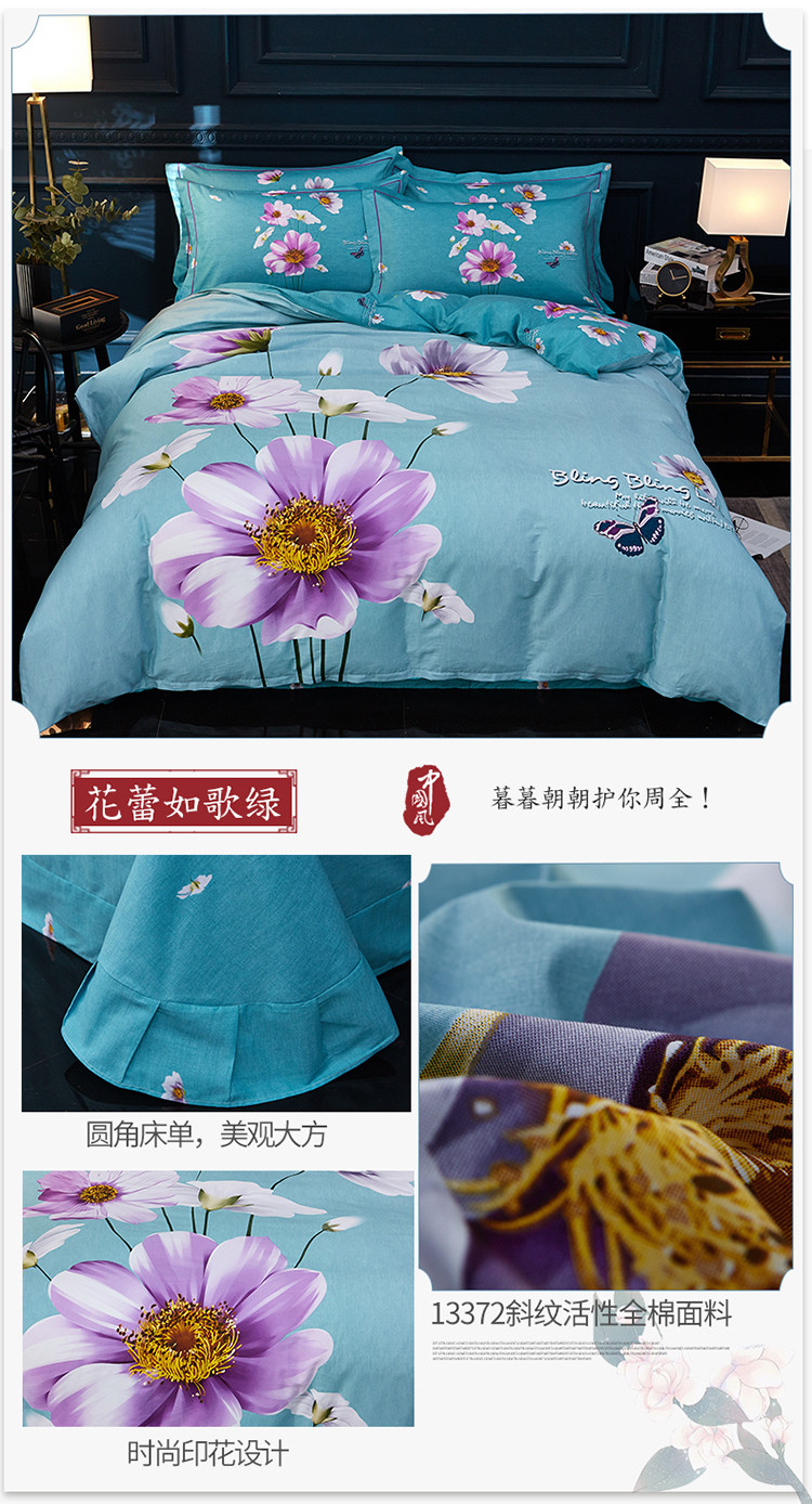 雲归梦 2020新款13372全棉大版四件套第二批 花蕾如歌绿