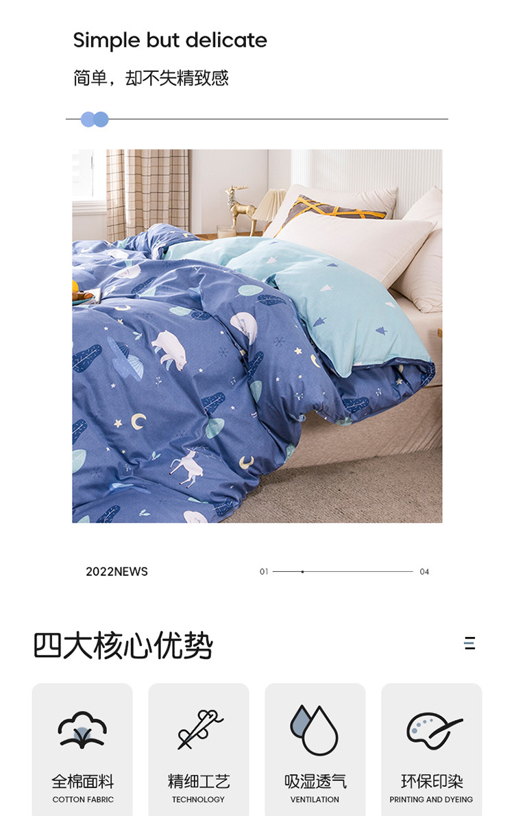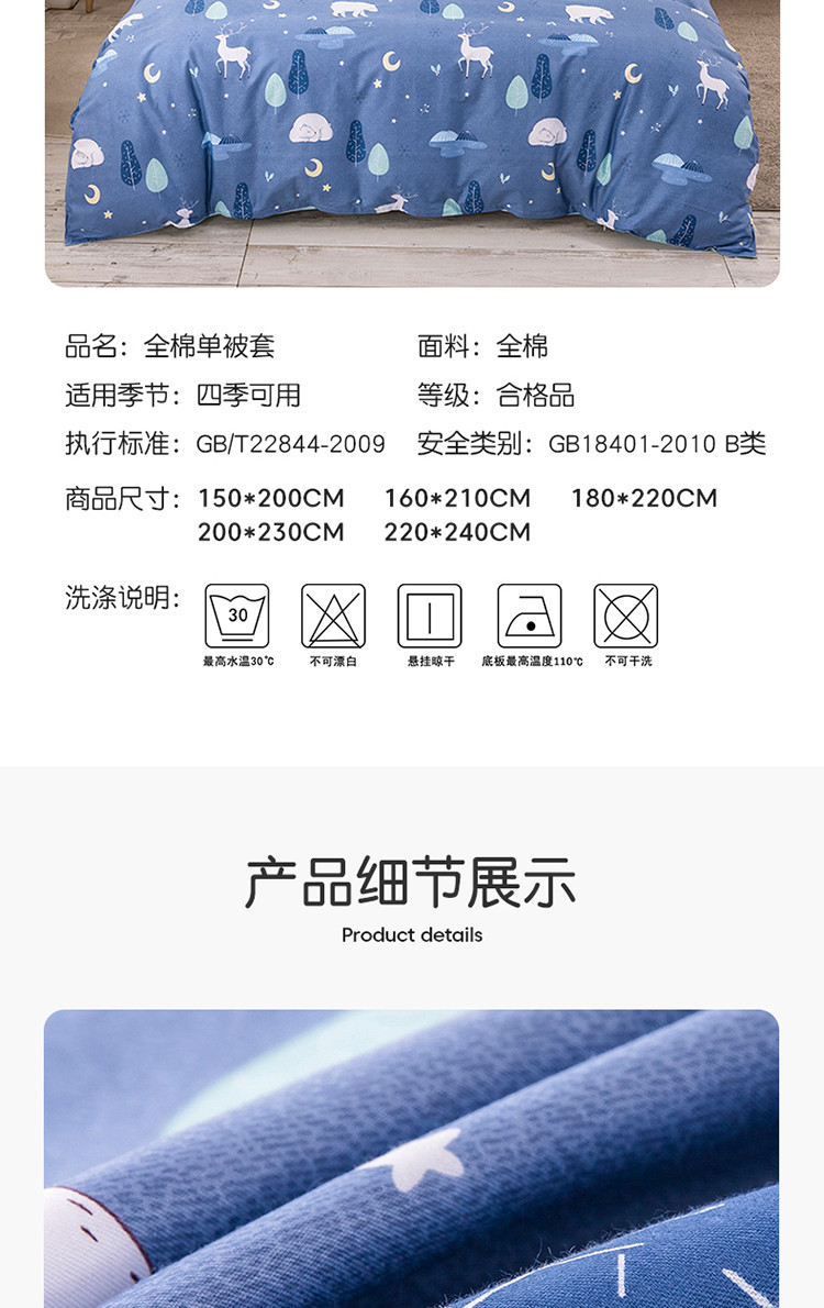 商品名称:铭成 2022新款全棉12868小清新系列单被套 夜晚的森林