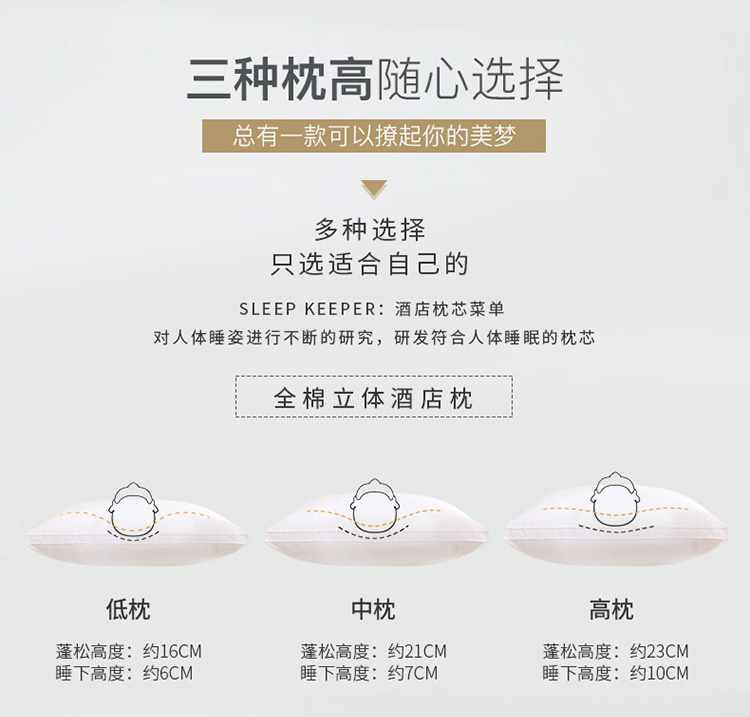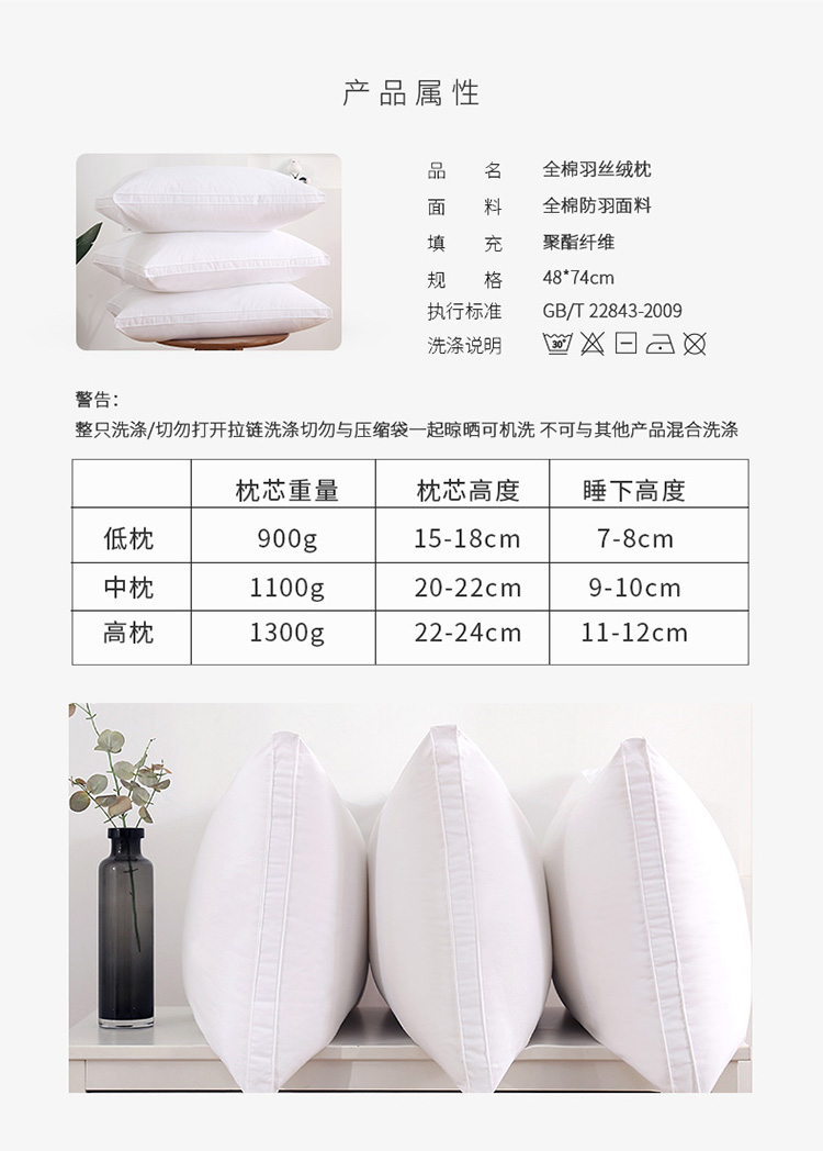商品名称:锦绣万家 2020新款星级酒店羽丝绒枕芯 立体边