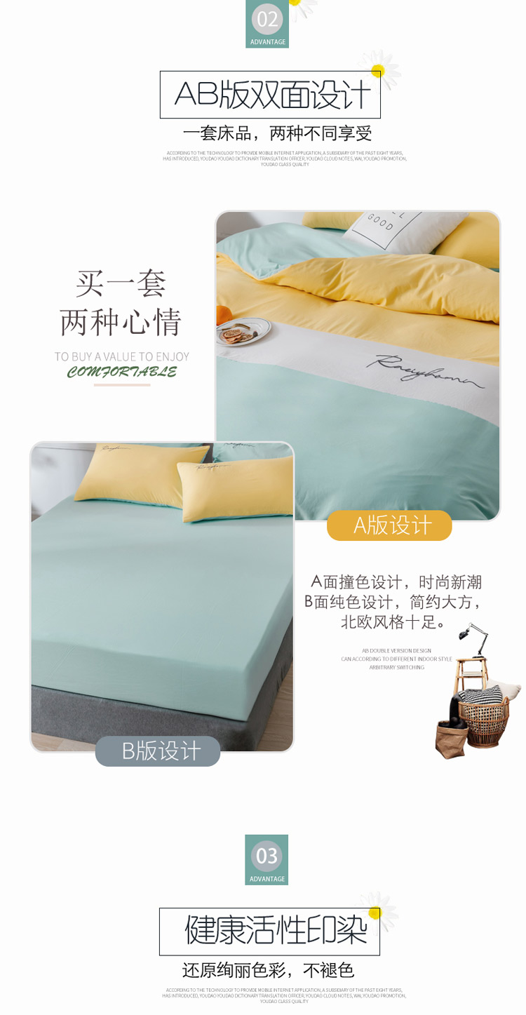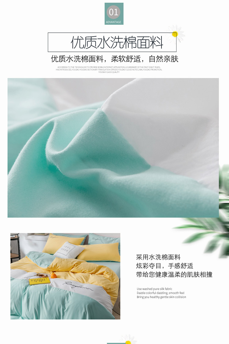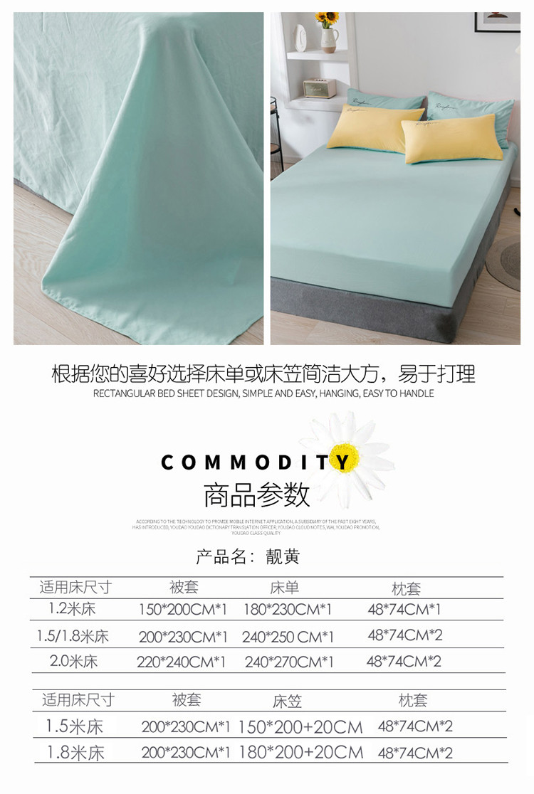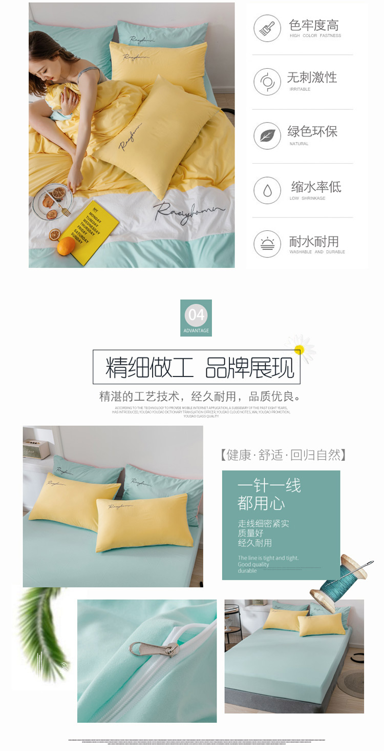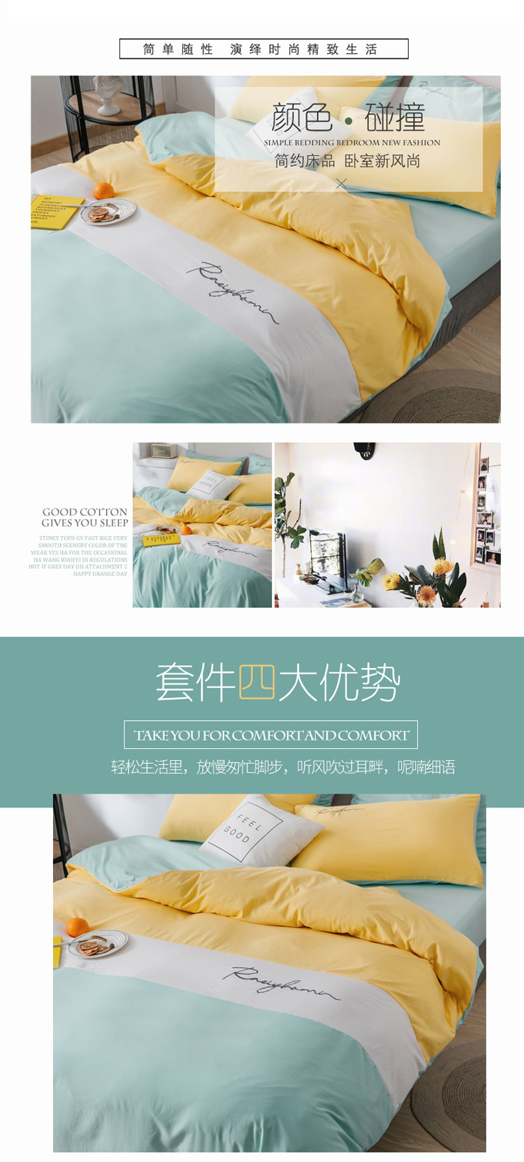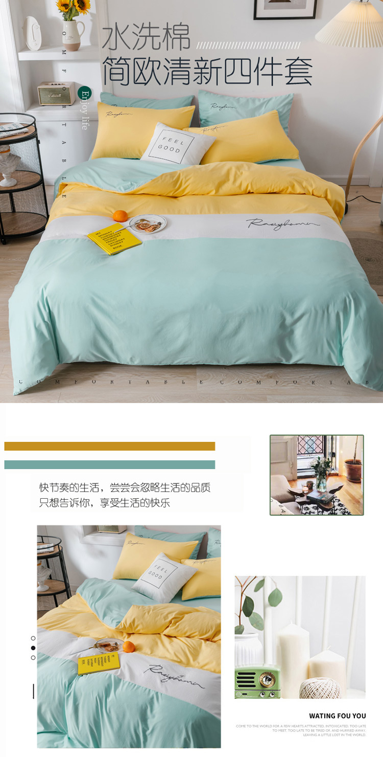 索飞特 2021春夏新款水洗棉四件套三色系列 靓黄