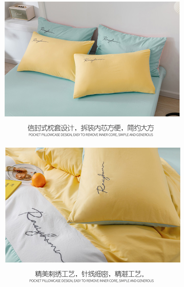 (总)索飞特 2021春夏新款高密度水洗棉宽边刺绣四件套,粉白色,姜黄,奢绿,深灰,松石绿,雾蓝,象牙白,樱花粉
