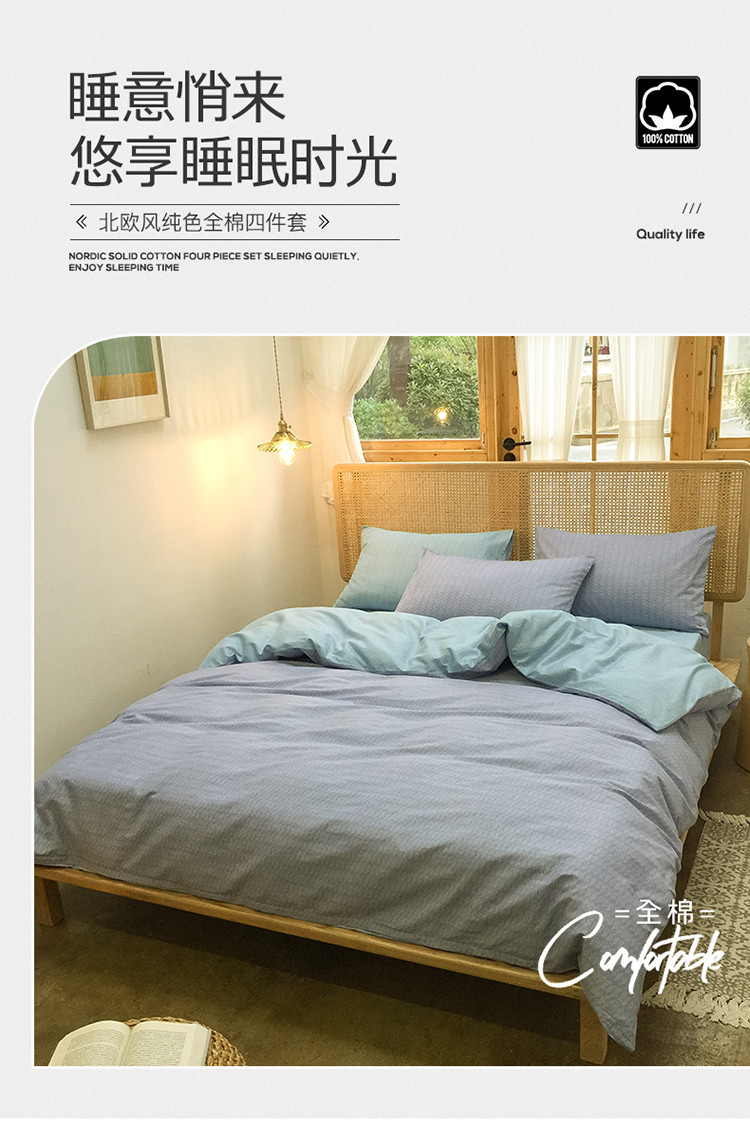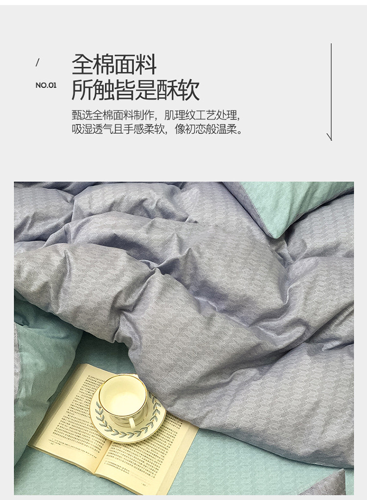 商品名称:雲归梦 2020新款北欧风纯色全棉四件套 遇见-灰绿