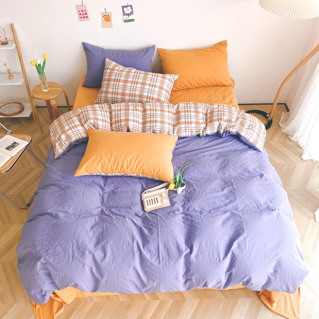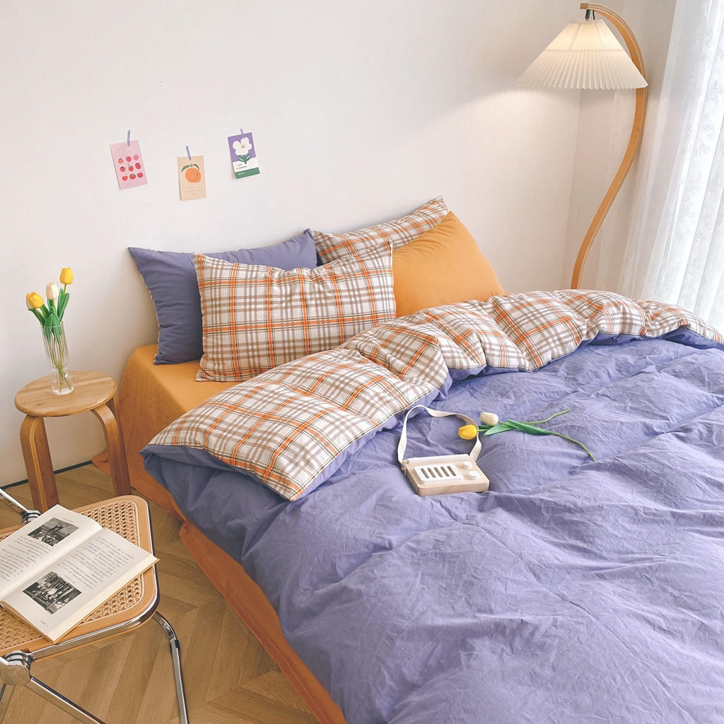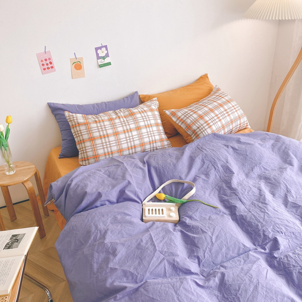 卡巴伦2023新款水洗棉治愈系复古撞色格子系列四件套朝霞-B