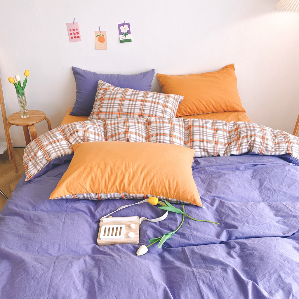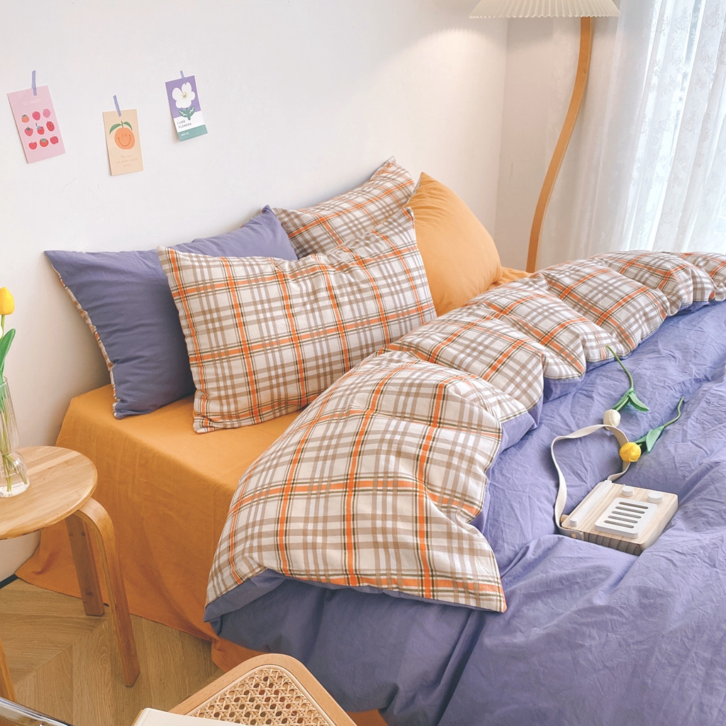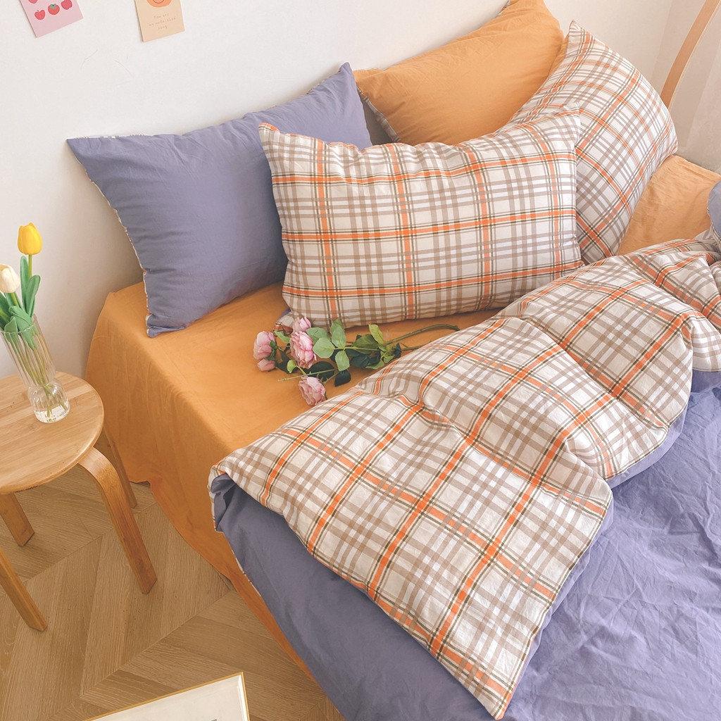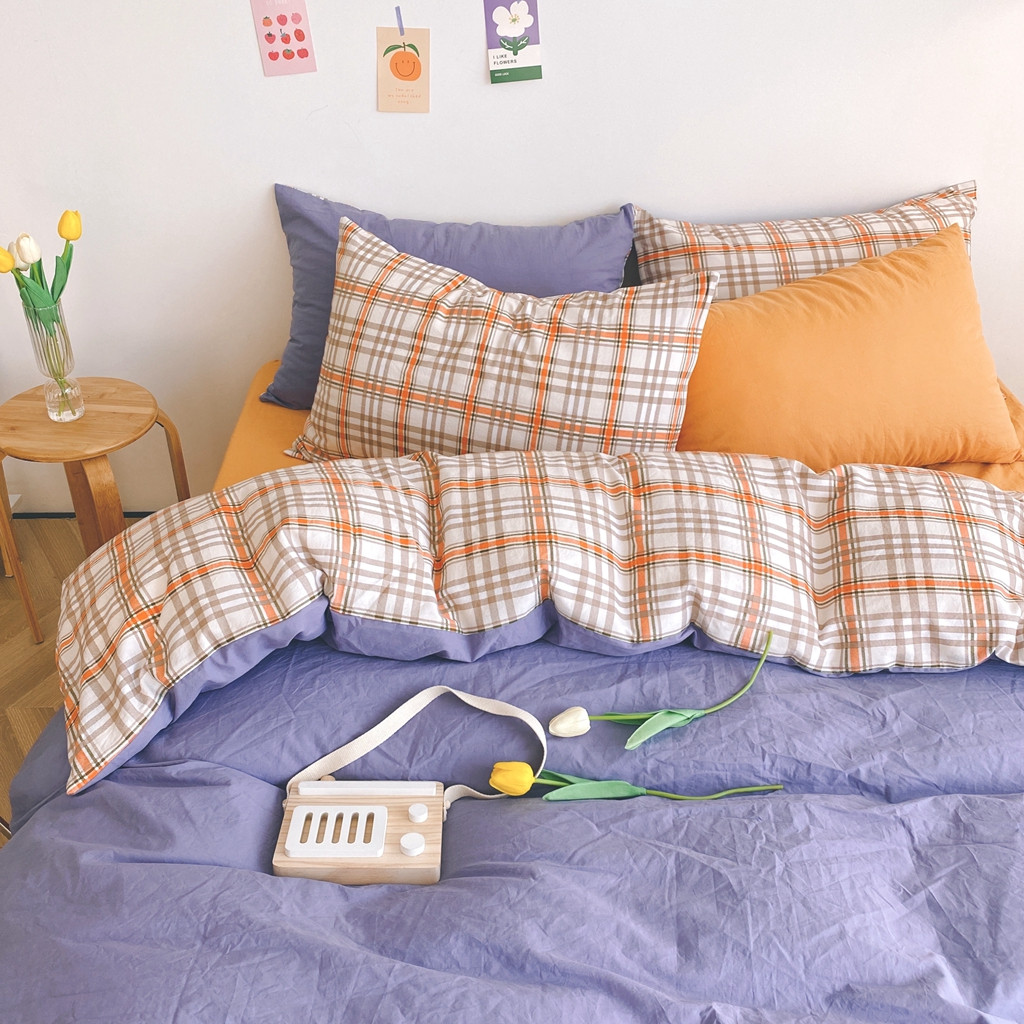 商品名称:卡巴伦2023新款水洗棉治愈系复古撞色格子系列四件套朝霞-B