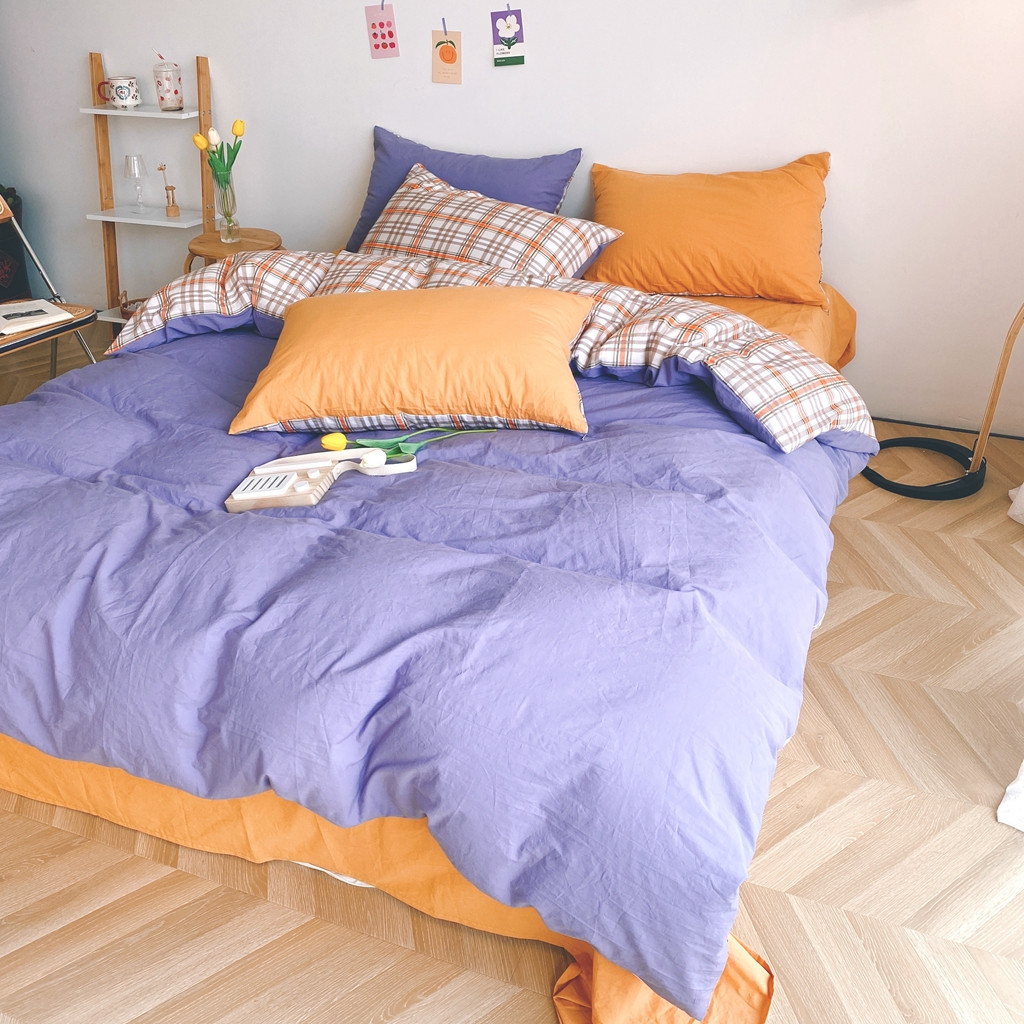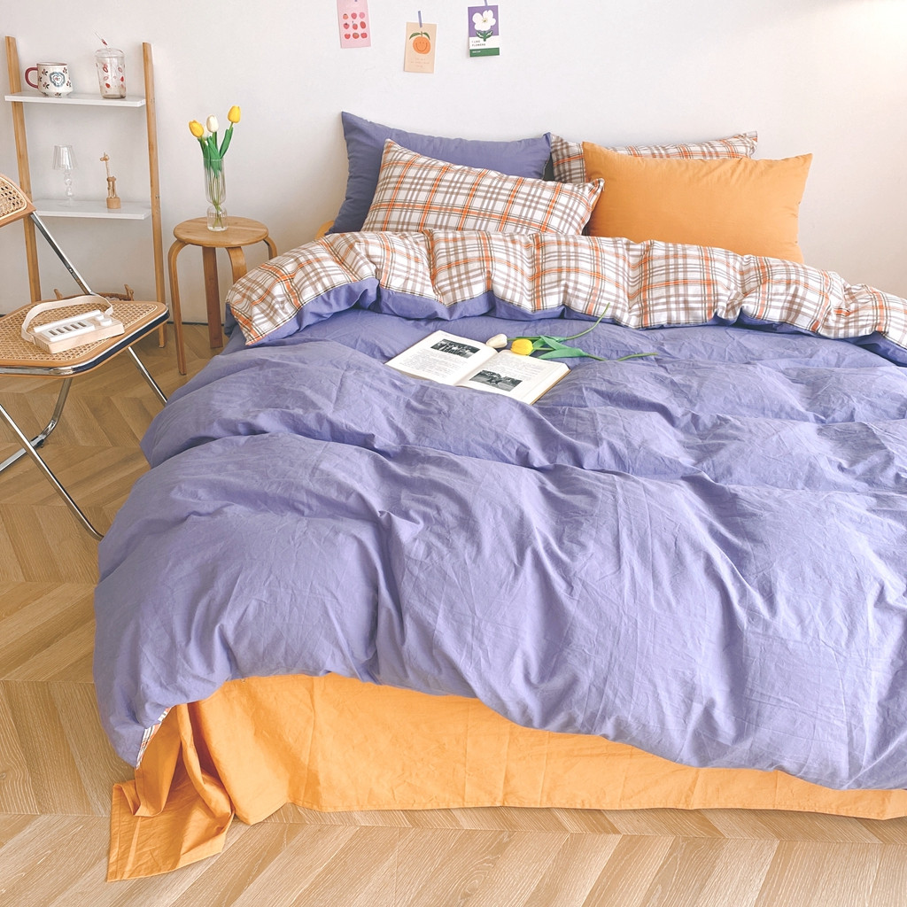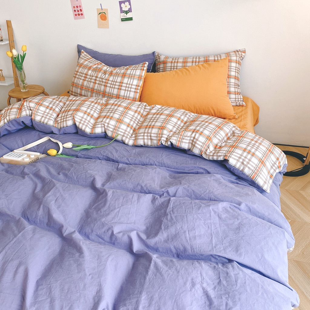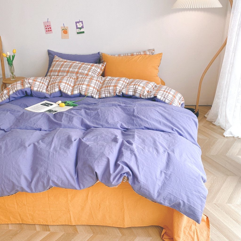 商品名称:卡巴伦2023新款水洗棉治愈系复古撞色格子系列四件套朝霞-B